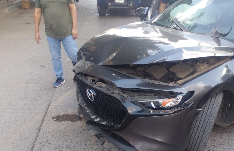 Guasave, Sin.– Un choque entre dos vehículos ocurrido al medio día de este viernes frente a una escuela técnica en la zona centro de la