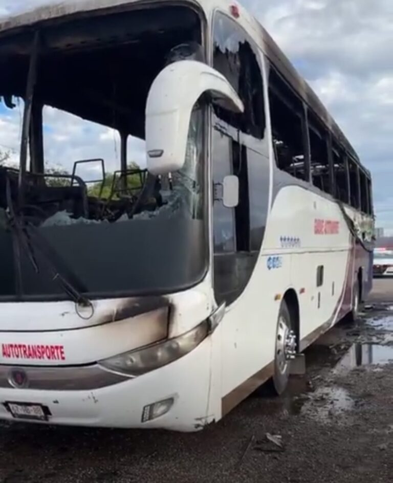 Guamúchil, Sin.- Un autobús de pasajeros quedó convertido en chatarra al ser consumido por el fuego, siniestro provocado al parecer por una falla en el