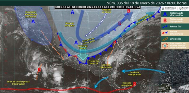Ciudad de México.- Para hoy, el frente frío núm. 29 se desplazará sobre el oriente del golfo de México, península de Yucatán y sureste del