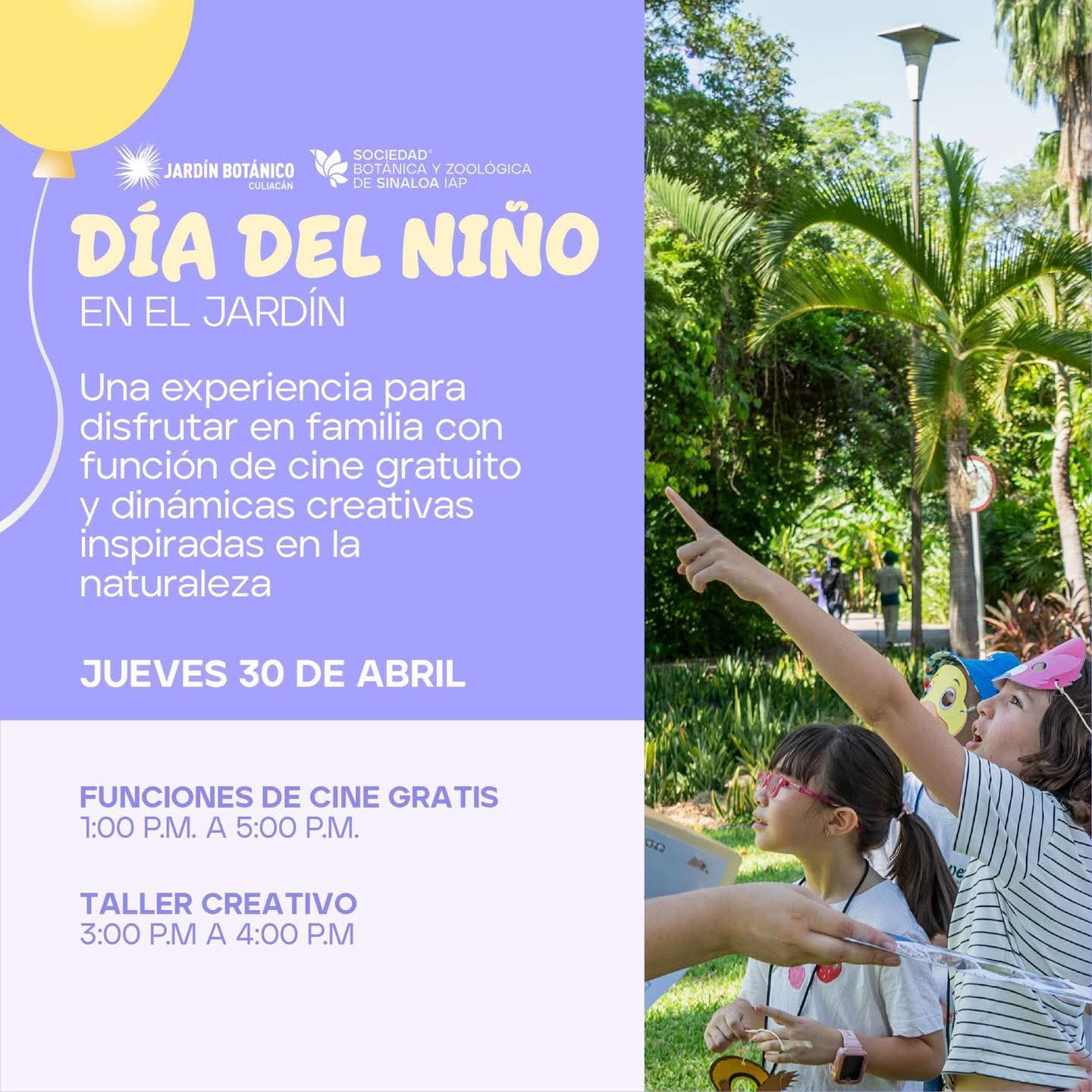 Culiacán, Sin.- En el marco del Día del Niño, el Jardín Botánico Culiacán llevará a cabo una serie de actividades especiales dirigidas a niñas y niños, con el objetivo de fomentar la creatividad, la convivencia familiar y el juego en espacios seguros y en contacto con la naturaleza.