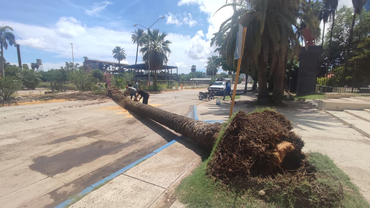 Personal de Servicios Públicos del Ayuntamiento de Ahome utilizó motosierras para cortar la palmera en secciones y liberar la vía. Aunque el incidente solo dejó daños materiales, generó preocupación entre automovilistas y vecinos por el estado de otros árboles en la zona.