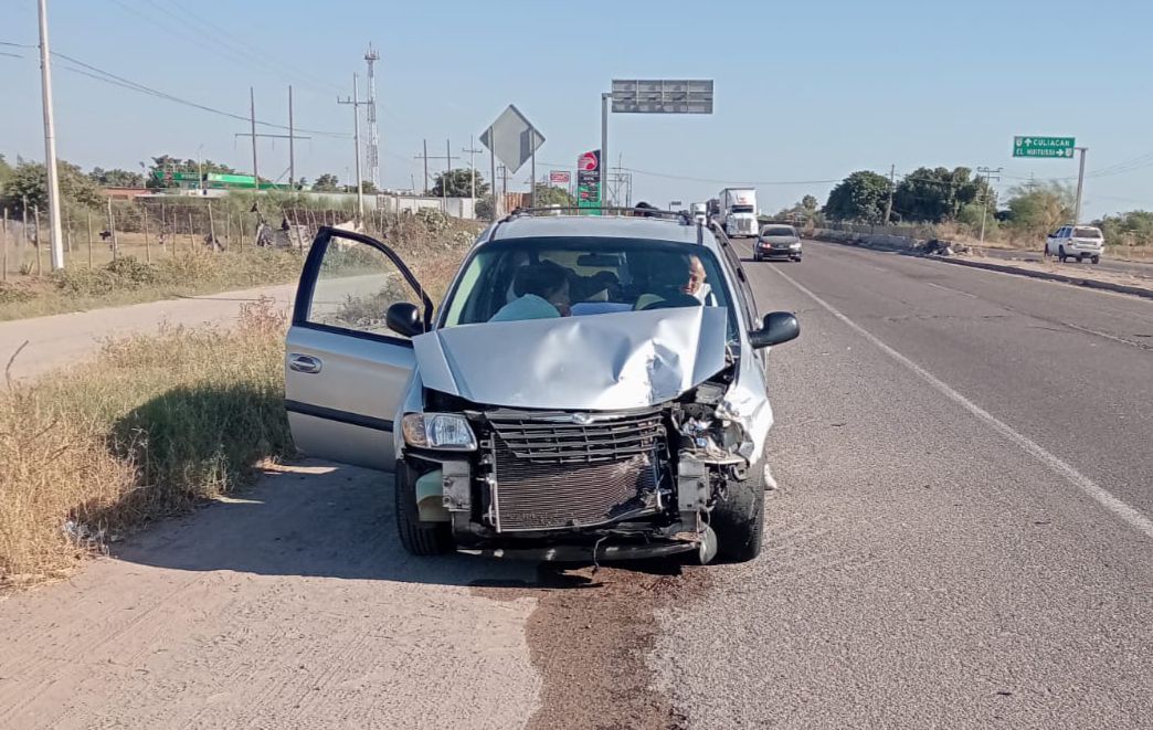 Guasave, Sinaloa.- Un accidente automovilístico tipo choque se registró la tarde de este lunes 15 de diciembre sobre la carretera Internacional México 15, en el tramo de sur a norte, a la altura de la sindicatura de Benito Juárez, en el municipio de Guasave, dejando únicamente daños materiales.