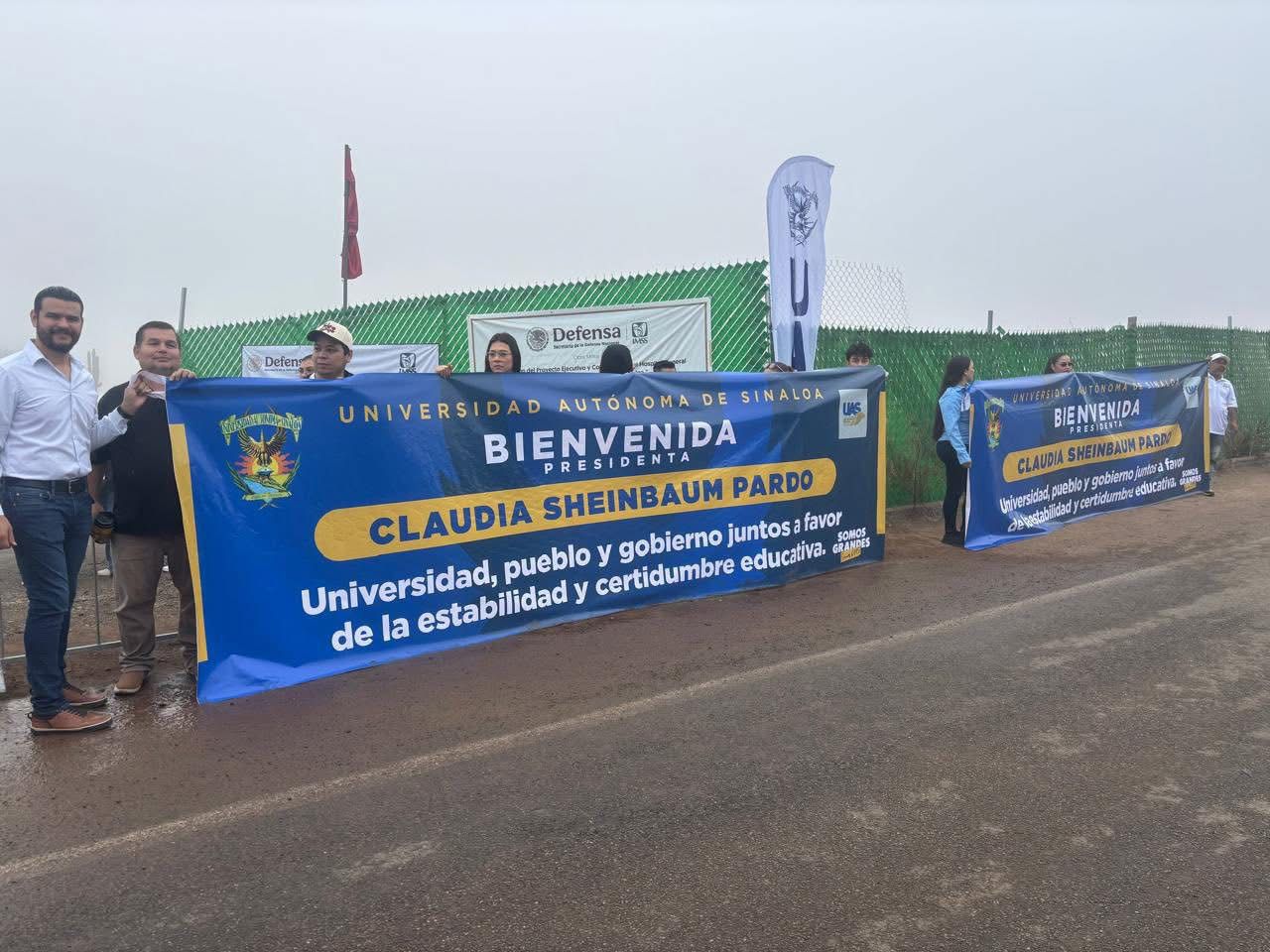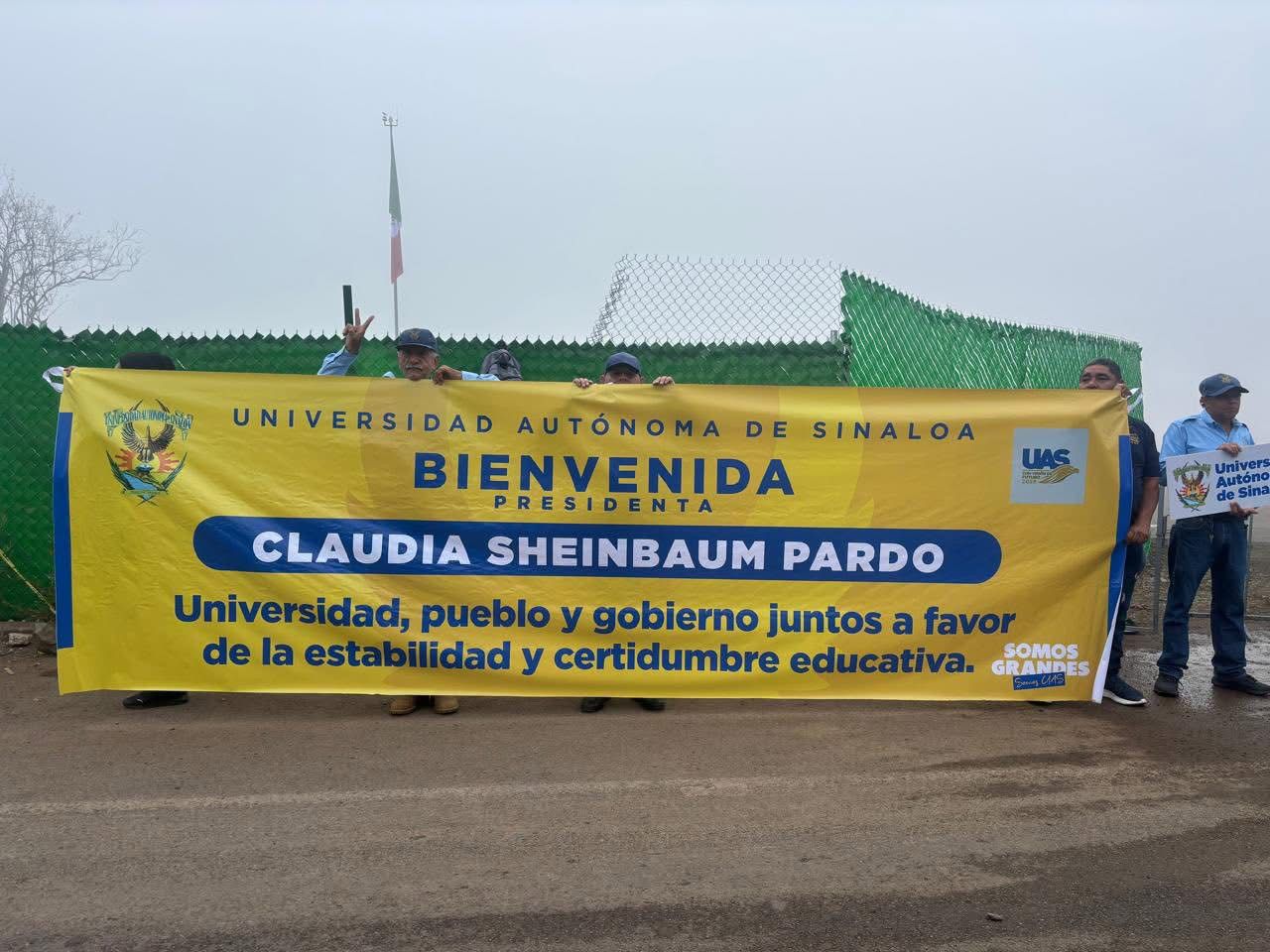 Entre los mensajes destacó la bienvenida por parte de la Universidad Autónoma de Sinaloa así como otros mensaje no firmados que dicen: “Sinaloa está con usted y la transformación”.