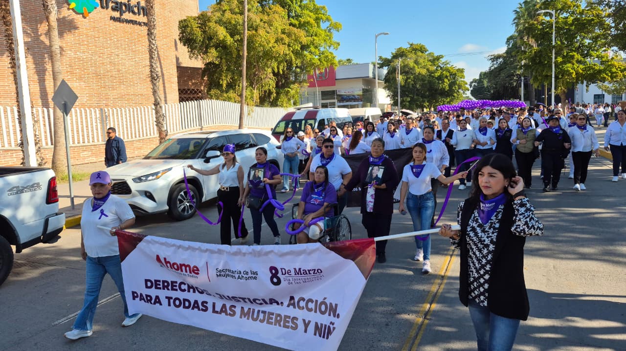 Los Mochis, Sin.- Cientos de personas recorrieron las calles del Centro de Los Mochis como protesta para exigir los derechos de las mujeres en la Marcha del 8M que organiza la Secretaría de las Mujeres de Ahome.