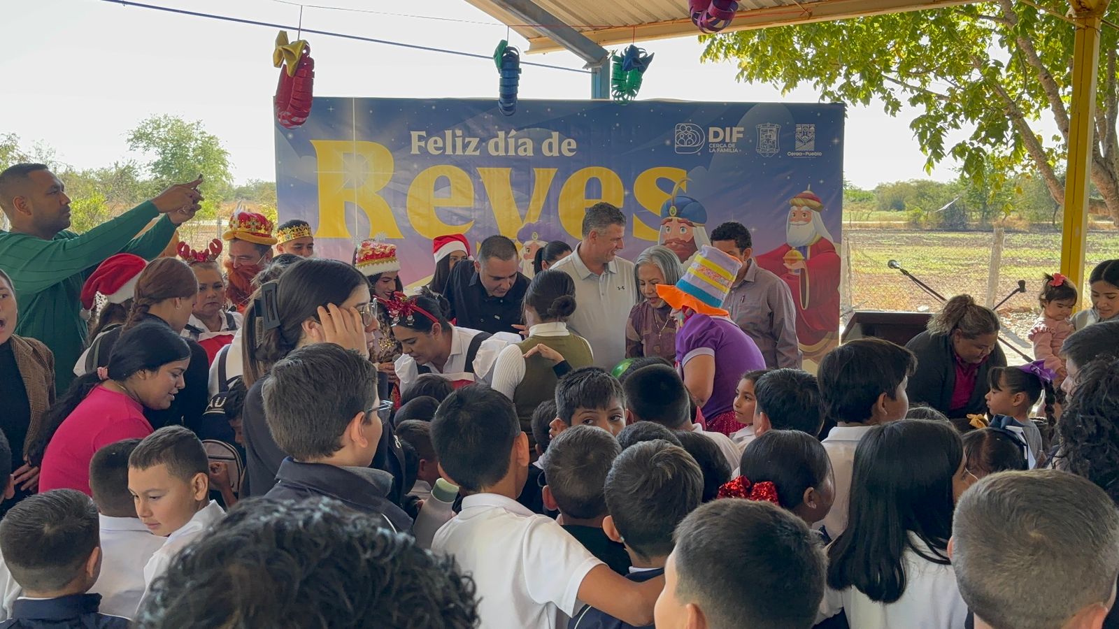 Guamúchil, Sin.- Decenas de niños y niñas de las comunidades de la 15 de Septiembre, 27 de Noviembre, 20 de Noviembre, Tres Palmas y Las Cabezas, se divirtieron, recibieron juguetes y degustaron rosca de reyes durante el arranque de la Gira de Reyes que realizará el sistema DIF de Salvador Alvarado para brindar alegría y generar sonrisas la niñez.