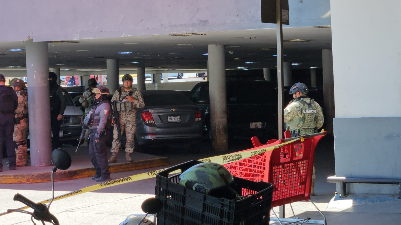 De acuerdo con los primeros reportes, el ataque ocurrió poco antes de la una de la tarde, cuando el motociclista se aproximó al área de rampas del estacionamiento y abrió fuego con un arma corta. La víctima cayó gravemente herida sobre la pendiente que conduce a los niveles superiores del inmueble, mientras testigos alertaban a las autoridades sobre la balacera.
