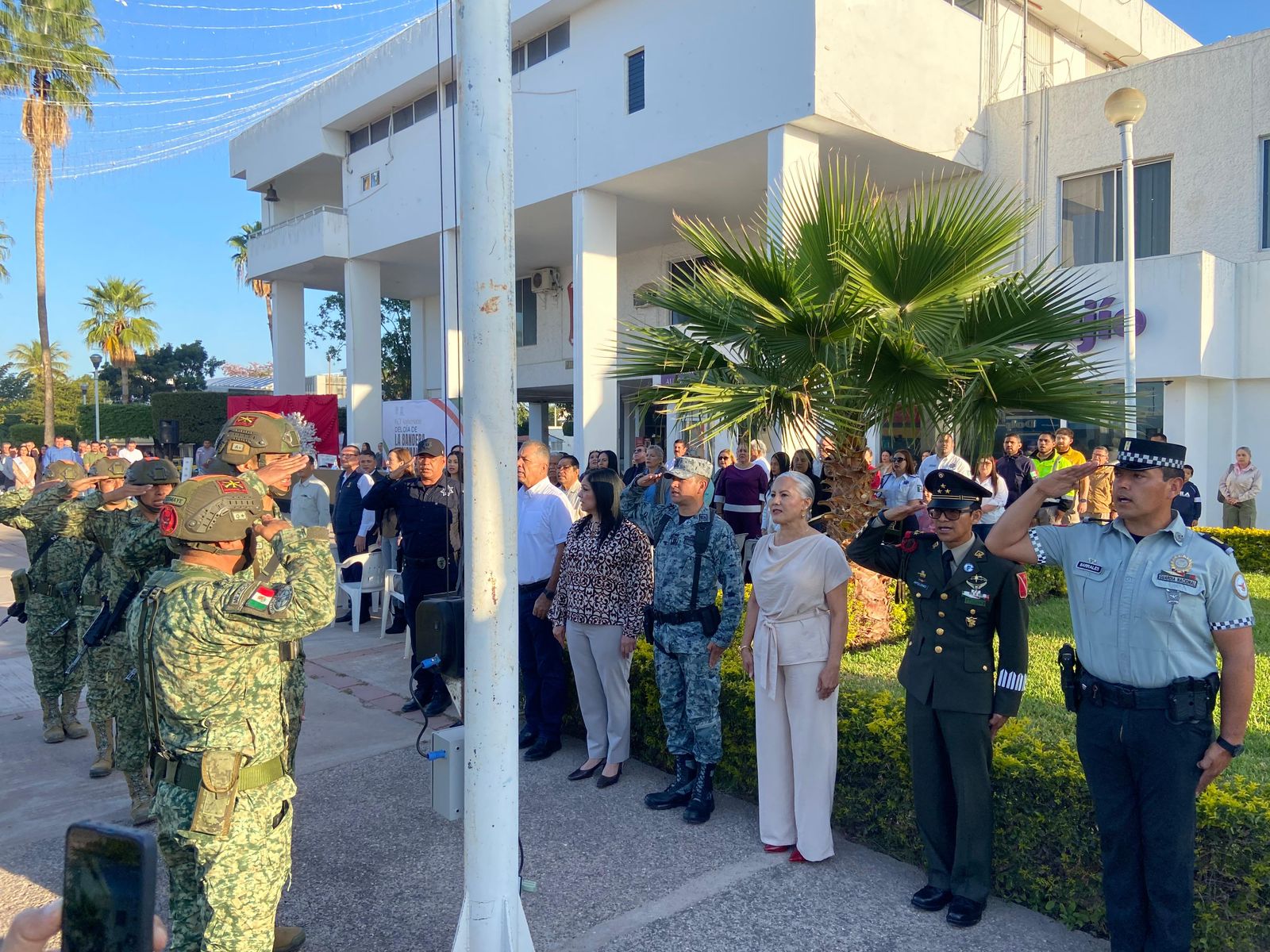Guamúchil, Sin.- La mañana de este martes 24 de febrero se llevó a cabo la conmemoración del Día de la Bandera en el municipio de Salvador Alvarado, la cual inició con un acto cívico en la explanada del palacio municipal en la ciudad de Guamúchil, donde se realizó el izamiento del lábaro patrio y la entonación del Himno Nacional Mexicano, reafirmando el respeto y compromiso con los principios que representa.
