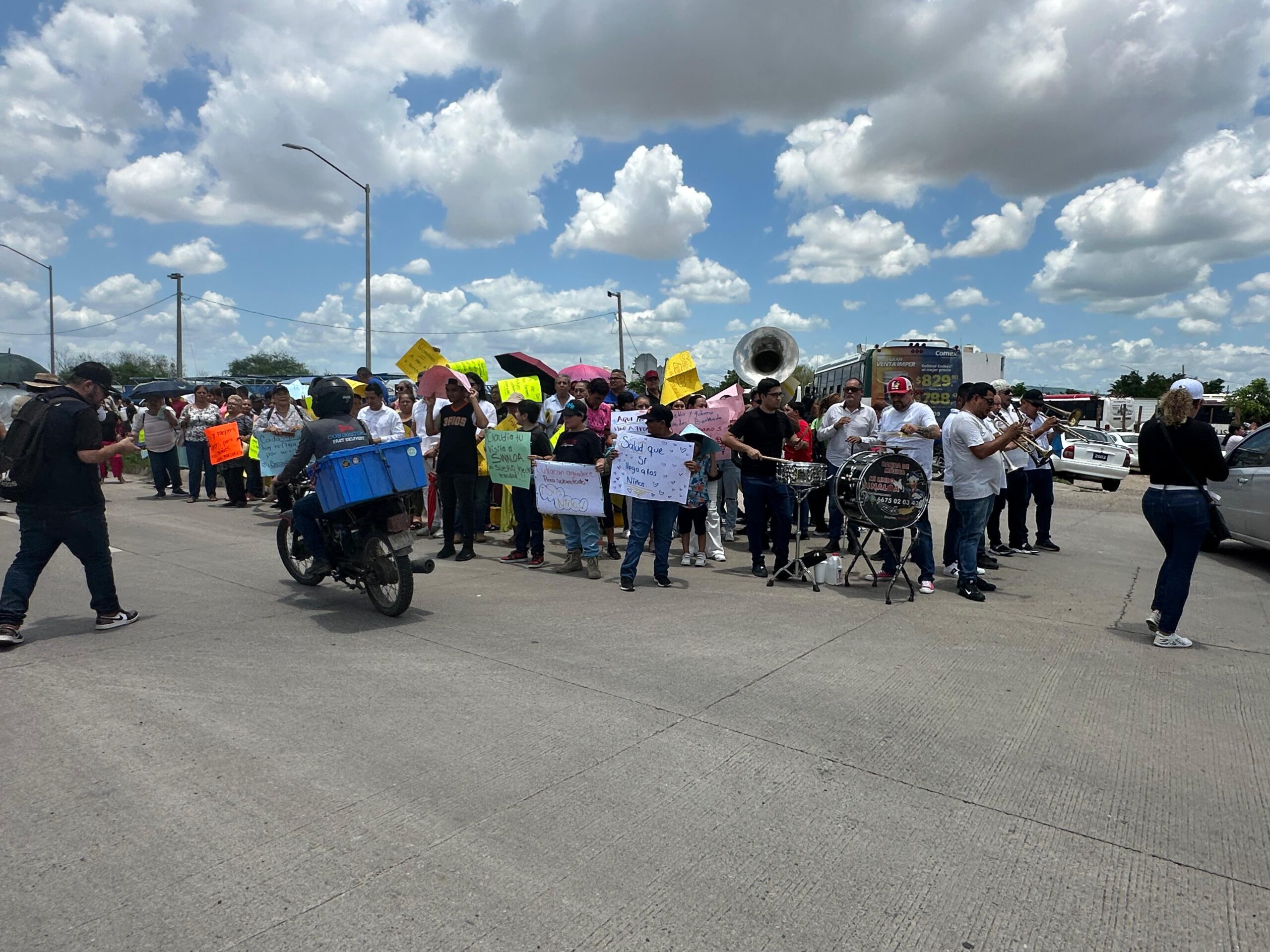 Culiacán, Sin.- Con banda sinaloense, cientos de “culichis” se concentran a las afueras de la Base Aérea Militar Número 10 para recibir a la Presidenta de la República, Claudia Sheinbaum Pardo.