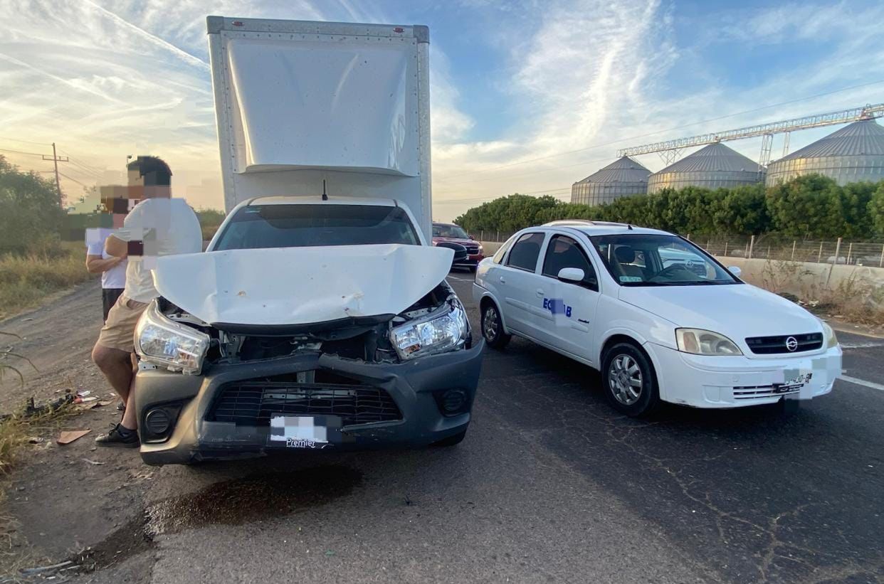 Guasave, Sin.- La tarde de este lunes se registraron dos hechos de tránsito casi simultáneos por la carretera Internacional México 15, a la altura del entronque con la carretera a La Brecha, en la sindicatura de El Burrión, dejando como saldo un hombre lesionado y cuantiosos daños materiales.