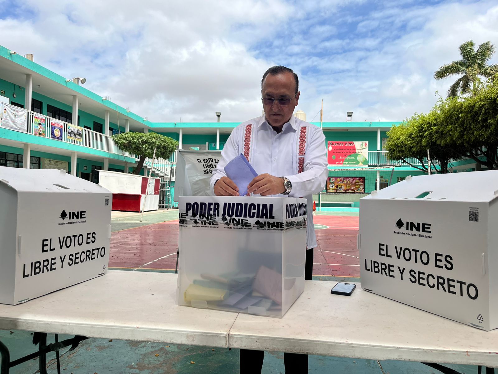 “En mi responsabilidad civil cumplir con esta obligación, derecho y beneficio que tenemos ahora los ciudadanos de poder elegir quiénes van a ser las autoridades que habrán de juzgar y resolver las controversias entre los particulares”, comentó el alcalde sobre el inédito proceso.