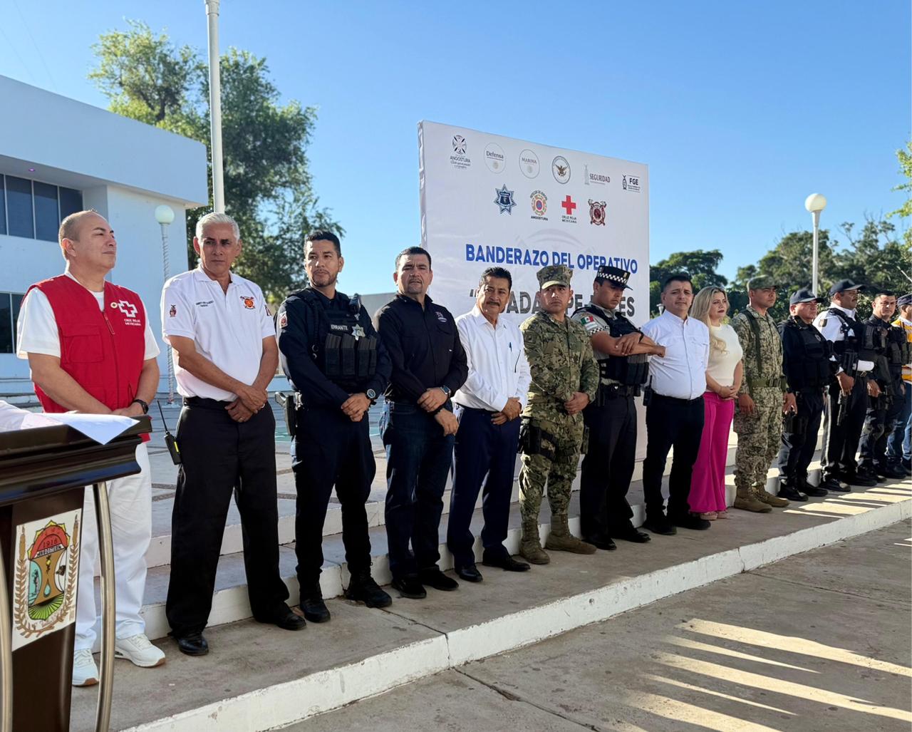 Angostura, Sin.- La mañana de este jueves 11 de diciembre se dio el banderazo de arranque del Operativo Guadalupe Reyes 2025-2026, a través del cual se desplegarán 200 elementos de diversas corporaciones de auxilio y seguridad para garantizar la seguridad de la ciudadanía durante estas fechas decembrinas y a arranque del próximo 2026, informó el director de Seguridad Ciudadana y Movilidad Sustentable de Angostura.