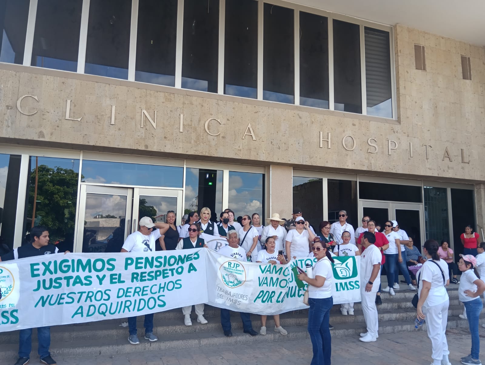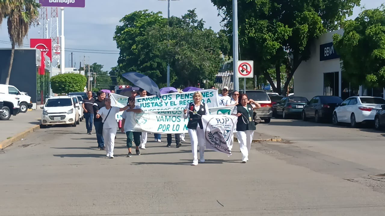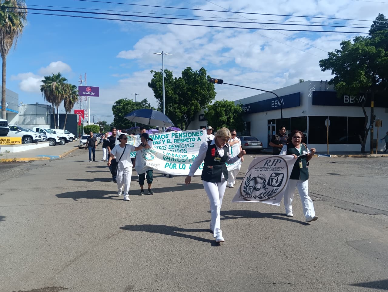 Guasave, Sin.- Personal activo de la Clínica 32 del Instituto Mexicano del Seguro Social (IMSS) en Guasave se manifestó este lunes con una marcha por las principales calles de la ciudad, exigiendo el regreso del régimen anterior de jubilaciones y pensiones que, aseguran, les fue retirado desde 2008.
