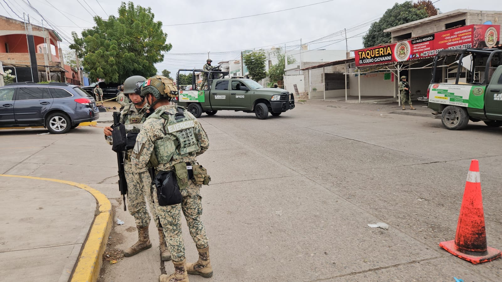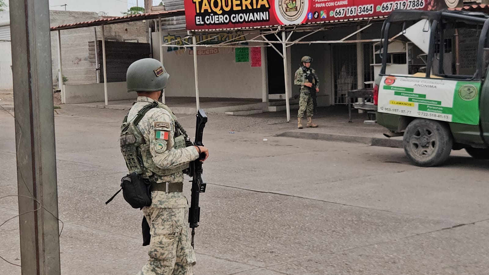 El detenido, de complexión delgada y tez morena, vestía pantalón gris, camiseta negra y tenis del mismo color. Fue asegurado por los elementos castrenses y colocado boca abajo sobre la banqueta, con las manos esposadas hacia atrás. La presencia militar generó expectación entre vecinos de la zona, quienes observaron el procedimiento desde la distancia.