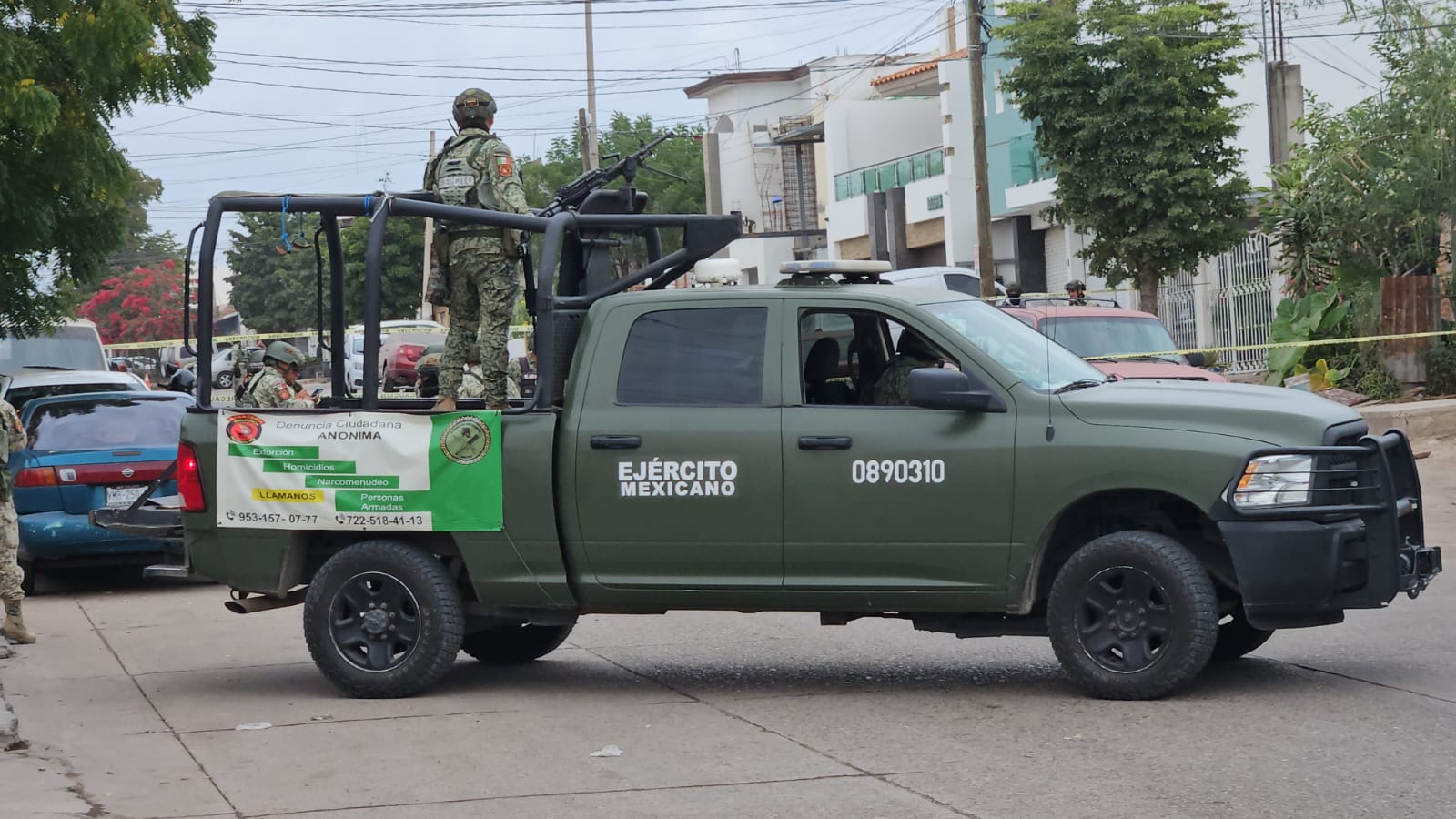 Culiacán, Sin.– Un despliegue del Ejército Mexicano realizado la mañana de este lunes derivó en la detención de un joven en la colonia Ortiz de Toledo, al sur de Culiacán. El operativo se llevó a cabo alrededor de las 11:00 horas en la esquina de las avenidas Hilario Medina y Rosendo Rodríguez.
