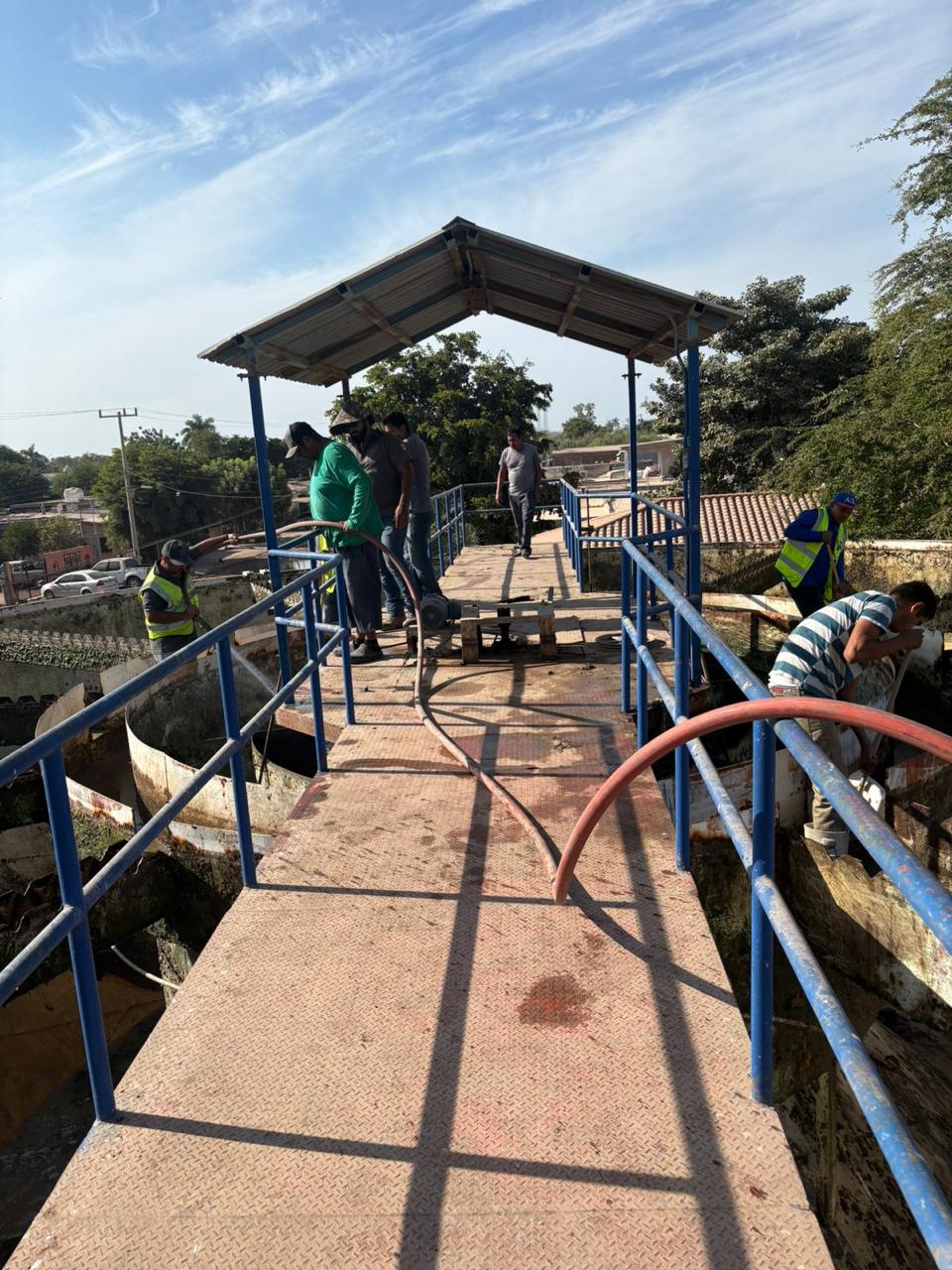 Juan José Ríos, Sin.- El H. Ayuntamiento de Juan José Ríos encabezado por la alcaldesa Evangelina Llanes Carreón a través de la Dirección de Agua Potable y Alcantarillado, llevó a cabo la limpieza del clarificador en la Planta Potabilizadora de la cabecera municipal.