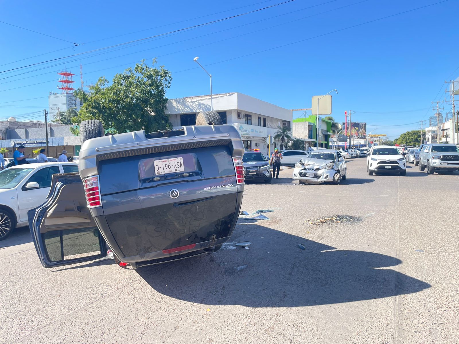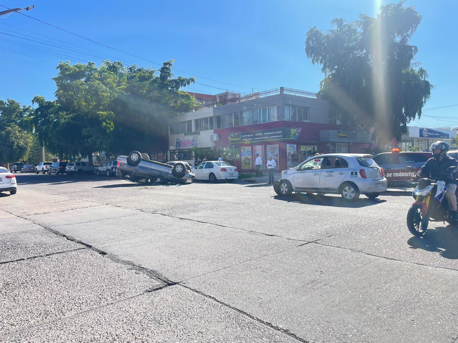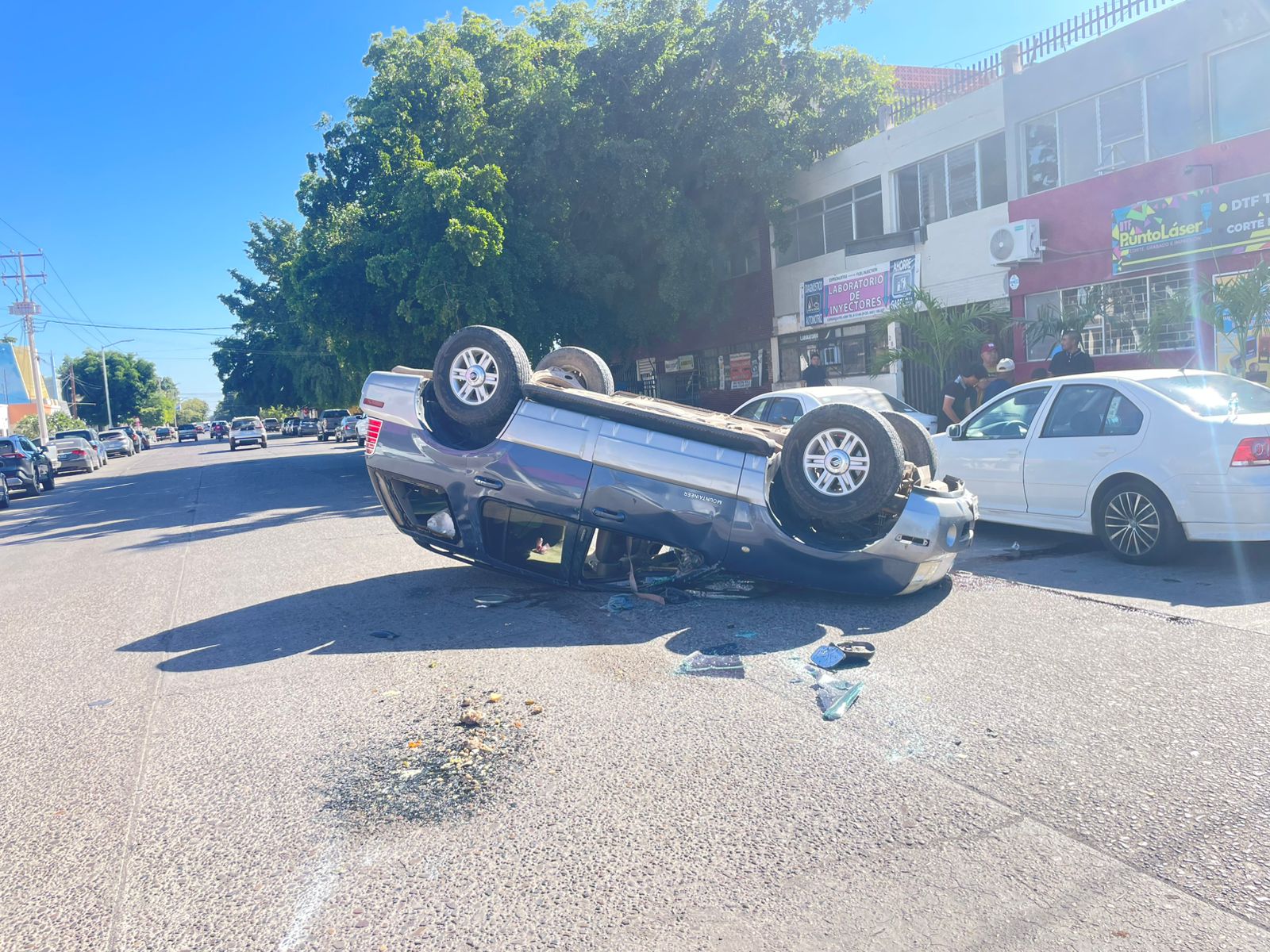 Los Mochis, Sin.- Un accidente tipo volcadura registrado la tarde de este lunes 22 de diciembre dejó como saldo dos personas lesionadas en calles del sector Centro de esta ciudad. El percance involucró un taxi y una vagoneta, y movilizó a los cuerpos de emergencia del municipio de Ahome.