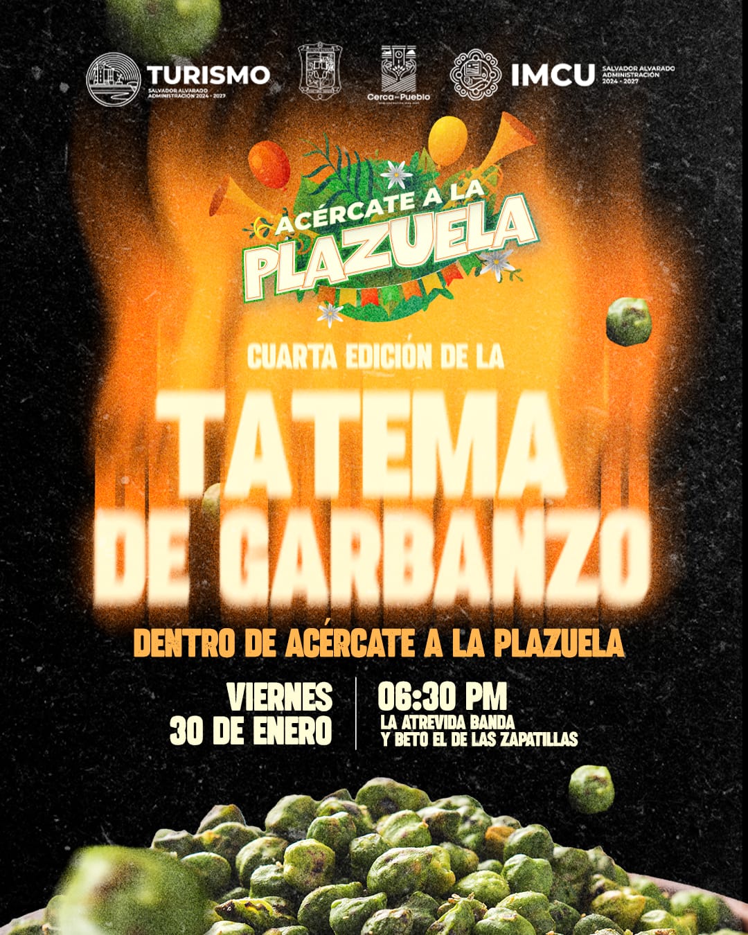 Guamúchil, Sin.- Como parte del programa “Acércate a la Plazuela”, este viernes 30 de enero en la plazuela municipal de Pedro Infante Cruz se llevará a cabo la cuarta edición de la tradicional Tatema de Garbanzo, un evento que busca promover las tradiciones gastronómicas y la convivencia familiar en el municipio de Salvador Alvarado, informó Lupita López González.