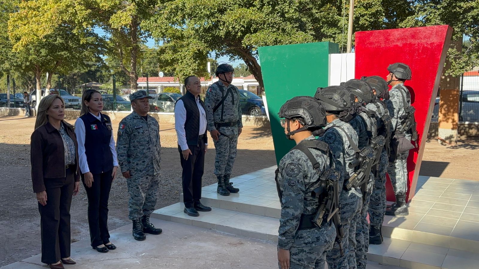 Como parte del programa se realizó una guardia de honor en la que participaron autoridades municipales, estatales y de la SEPyC.