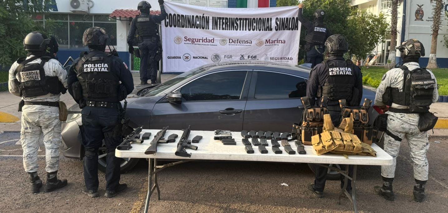 Al llevar a cabo recorridos de prevención y seguridad, policías estatales que circulaban en las inmediaciones de Urbivilla del Roble, en Culiacán, localizaron un vehículo Honda Civic con los cristales con alto grado de polarizado. Al verificar la serie, se detectó que cuenta con reporte de robo y, al realizar una inspección, se localizó en su interior lo siguiente: