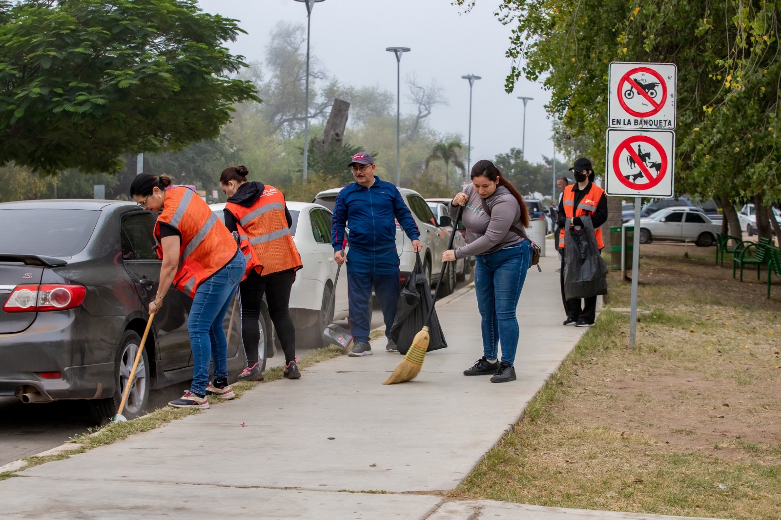 Guasave, Sin.- Avanza por cuarto sábado consecutivo la Jornada de Limpieza de la Ciudad. Esta mañana, trabajadores y funcionarios del Ayuntamiento y de las paramunicipales barrieron banquetas y guarniciones del Malecón María del Rosario Espinoza, desde el puente de la México 15 rumbo al puente Pepe Chuy Sánchez, y seguirán en el malecón Hermanos Cota.