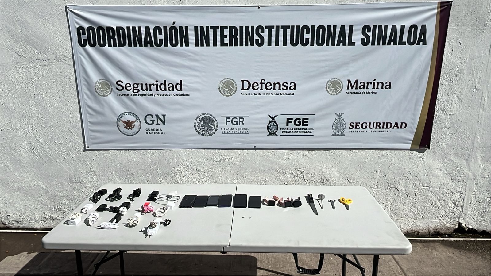 Culiacán, Sin.- Elementos de la Secretaría de Seguridad Pública de Sinaloa, a través del Grupo de Operaciones Especiales Sinaloa (GOES) de la Policía Estatal Preventiva, en coordinación con el Ejército Mexicano, la Guardia Nacional, la Secretaría de Marina, la Secretaría de Seguridad y Protección Ciudadana, la Fiscalía General de la República y la Fiscalía General del Estado, realizaron este lunes una nueva revisión en el Centro Penitenciario de Aguaruto, en Culiacán, derivado de la cual localizaron objetos prohibidos.
