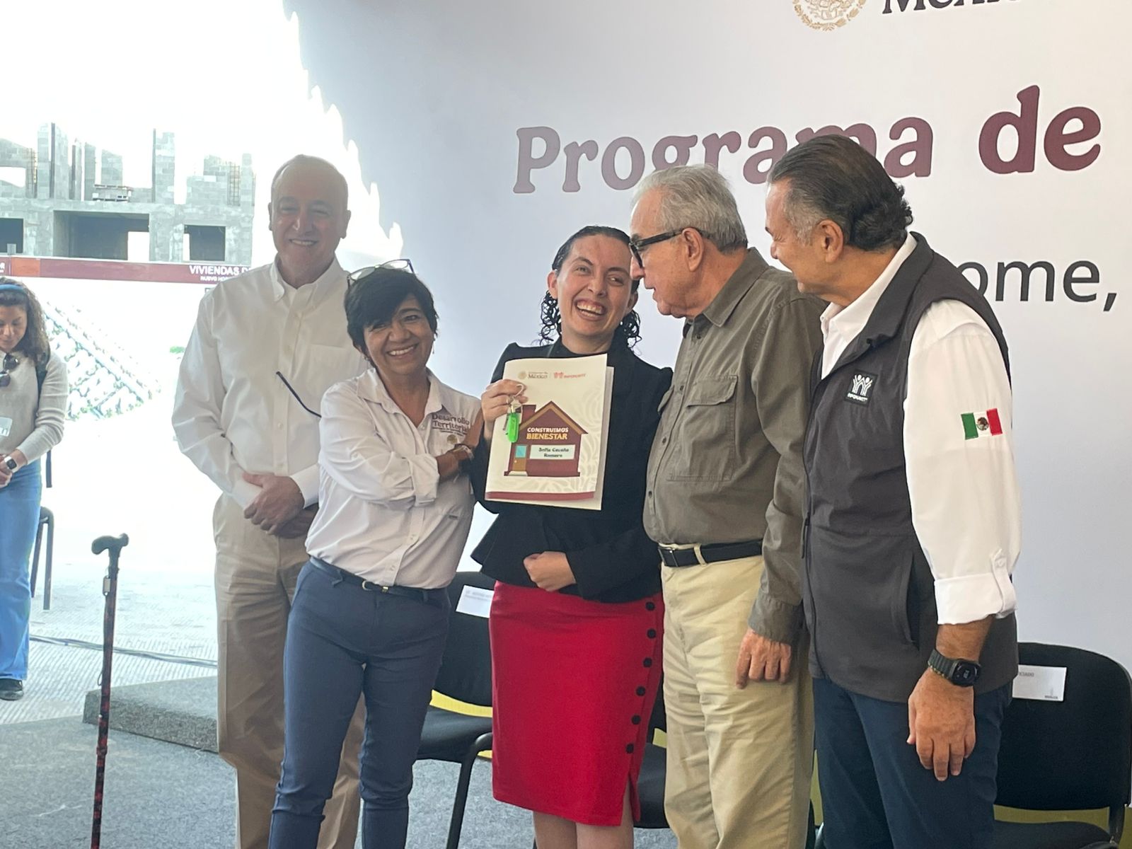 Mientras tanto, Octavio Romero Oropeza, director general de INFONAVIT, entregando las llaves de su nueva vivienda a la beneficiaria Belén Fontes Zayas, informó que en el fraccionamiento Nuevo Horizonte de Los Mochis, ya fueron colocados el 100% de los 342 departamentos.