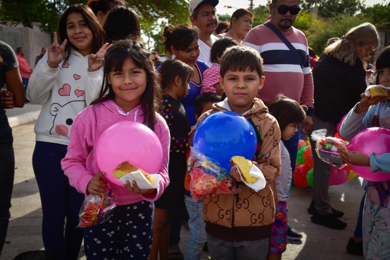 Durante la visita a dichos barrios, el Presidente a municipal compartió con los niños y las familias la tradicional rosca de reyes, dulces y pelotas, lo que puso felices a los pequeñines.