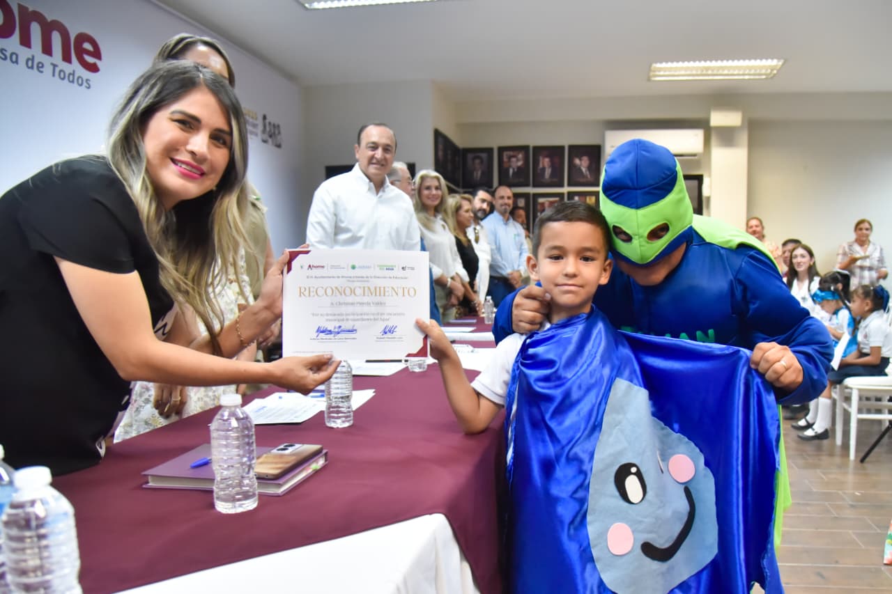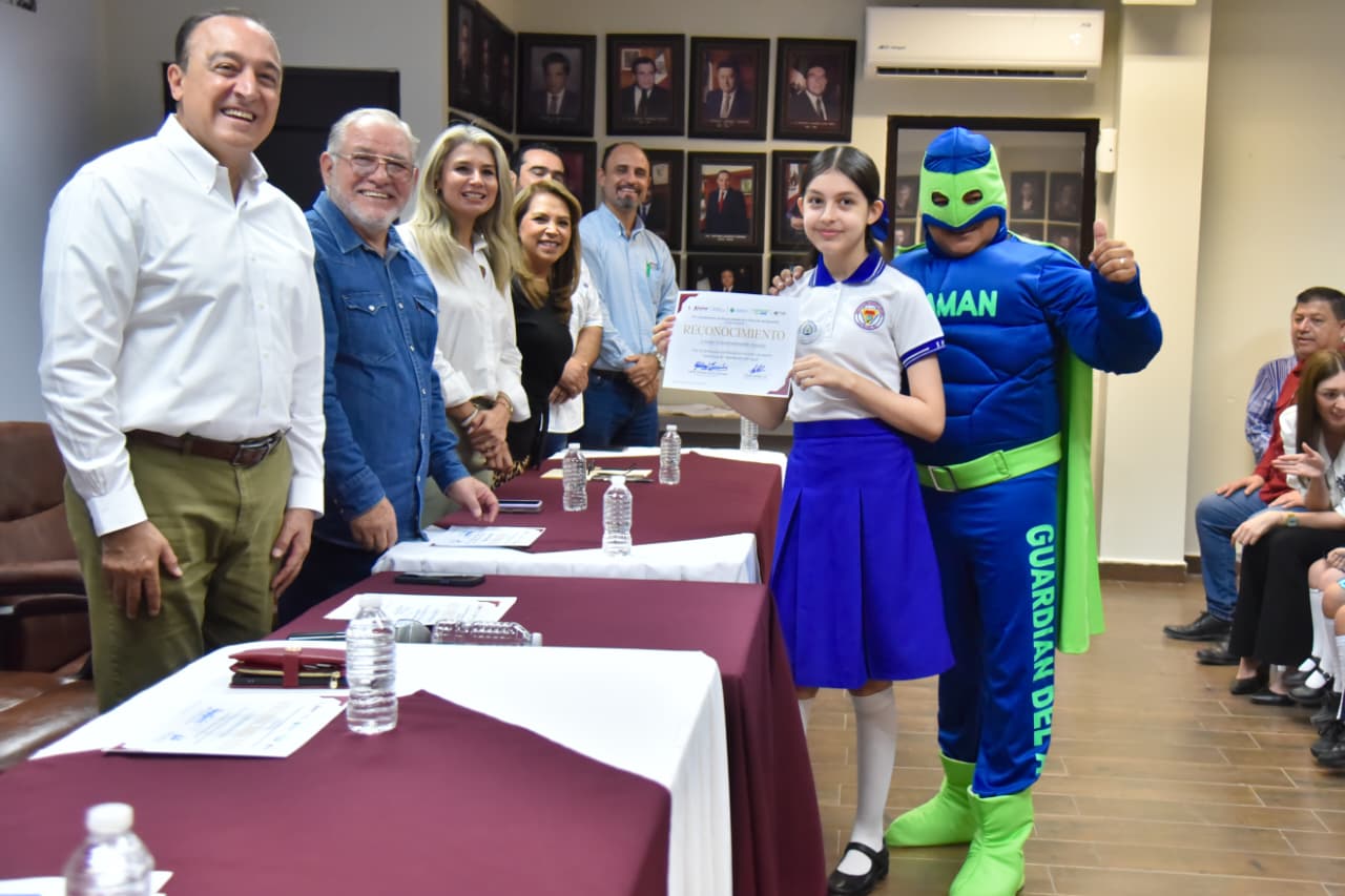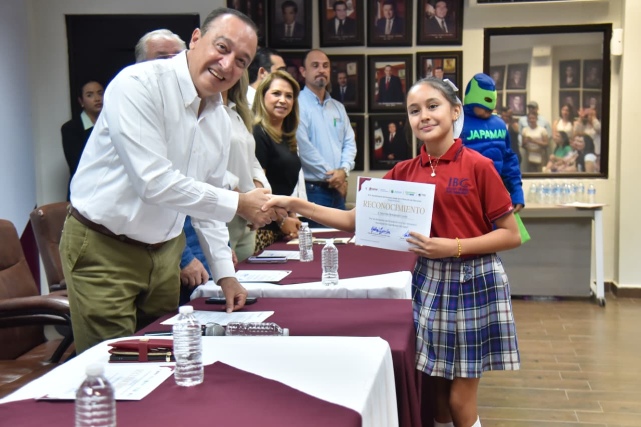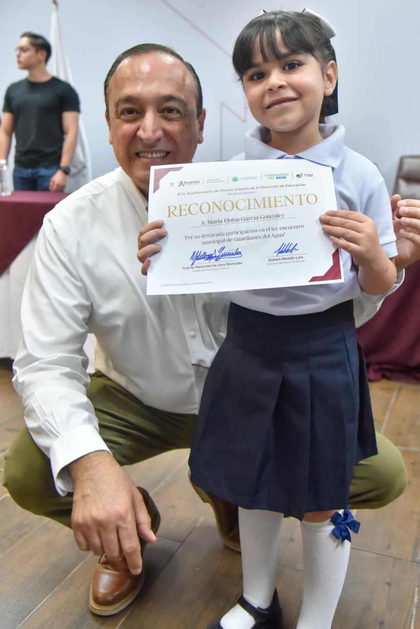 Los Mochis, Sin.- Con un mensaje de inspiración y compromiso hacia el cuidado de los recursos naturales, el Presidente Municipal de Ahome, Antonio Menéndez De Llano Bermúdez, encabezó la entrega de reconocimientos a niñas, niños y maestros participantes del Primer Encuentro Municipal de Guardianes del Agua.