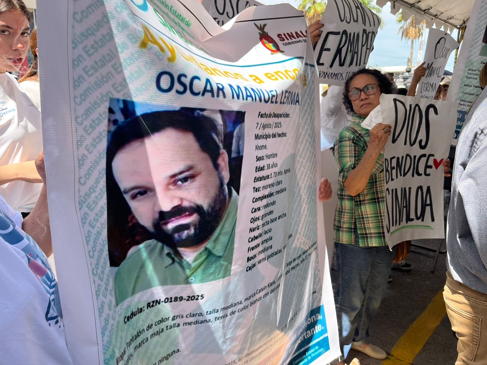 Los Mochis, Sin.- Familiares y amigos de Óscar Manuel Lerma Pérez se manifestaron pacíficamente este lunes en la Vicefiscalía Regional Zona Norte y Ayuntamiento de Ahome, para exigir su búsqueda y aparición tras ser ‘levantado’ el 07 de agosto.