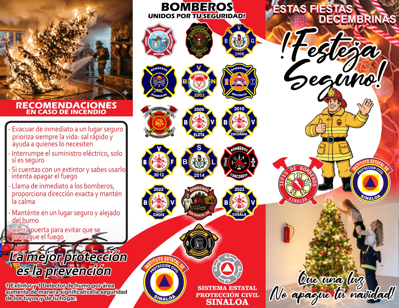 Horacio López Valenzuela, comandante del Heroico Cuerpo de Bomberos en Guamúchil, detalló que, que esta actividad forma parte de una estrategia estatal a la que se suma bomberos, donde entregan un tríptico a la ciudadanía, que explica cuidados tener al colocar pinos navideños naturales o artificiales, la colocación de luces navideñas y los riesgos del uso de la pirotecnia.