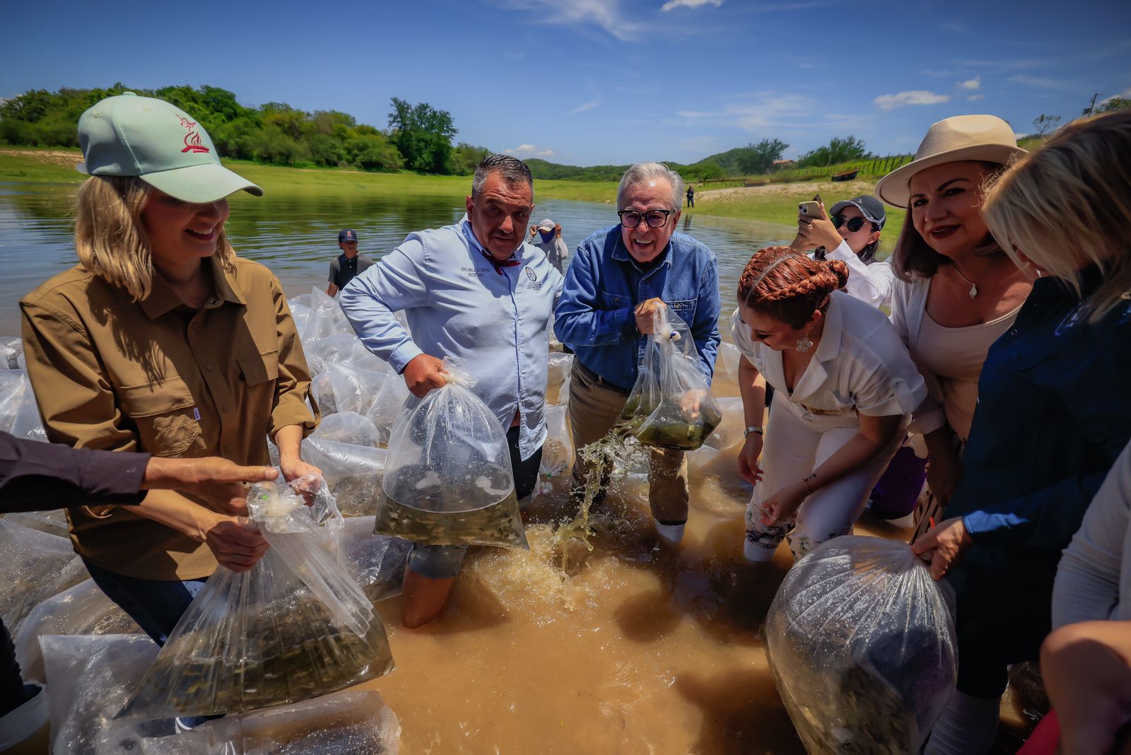 Mazatlán, Sin.- En compañía de pescadores de diversas presas del estado, el gobernador Rubén Rocha Moya puso en marcha desde la presa Picachos, en la zona serrana del municipio de Mazatlán, el Programa de Repoblamiento de Presas y Embalses 2025, que consiste en el repoblamiento de 24.5 millones de alevines en las 12 presas que existen en el estado y diversos diques, ubicados en 12 municipios de Sinaloa, y que representa una inversión de 12 millones de pesos.