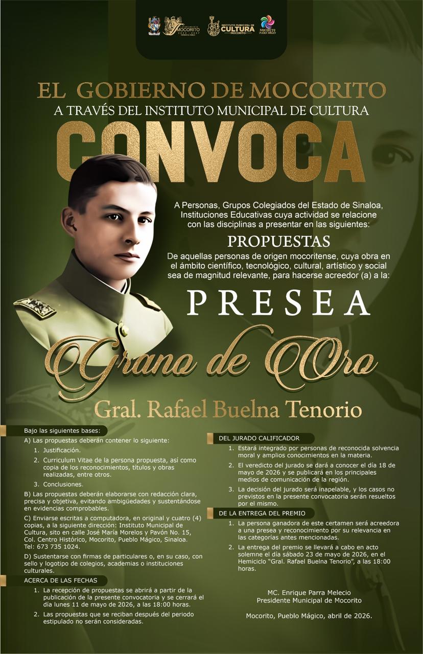 Ambas convocatorias forman parte de los esfuerzos del gobierno municipal por fomentar el reconocimiento al talento local, así como fortalecer la identidad histórica y cultural de Mocorito.