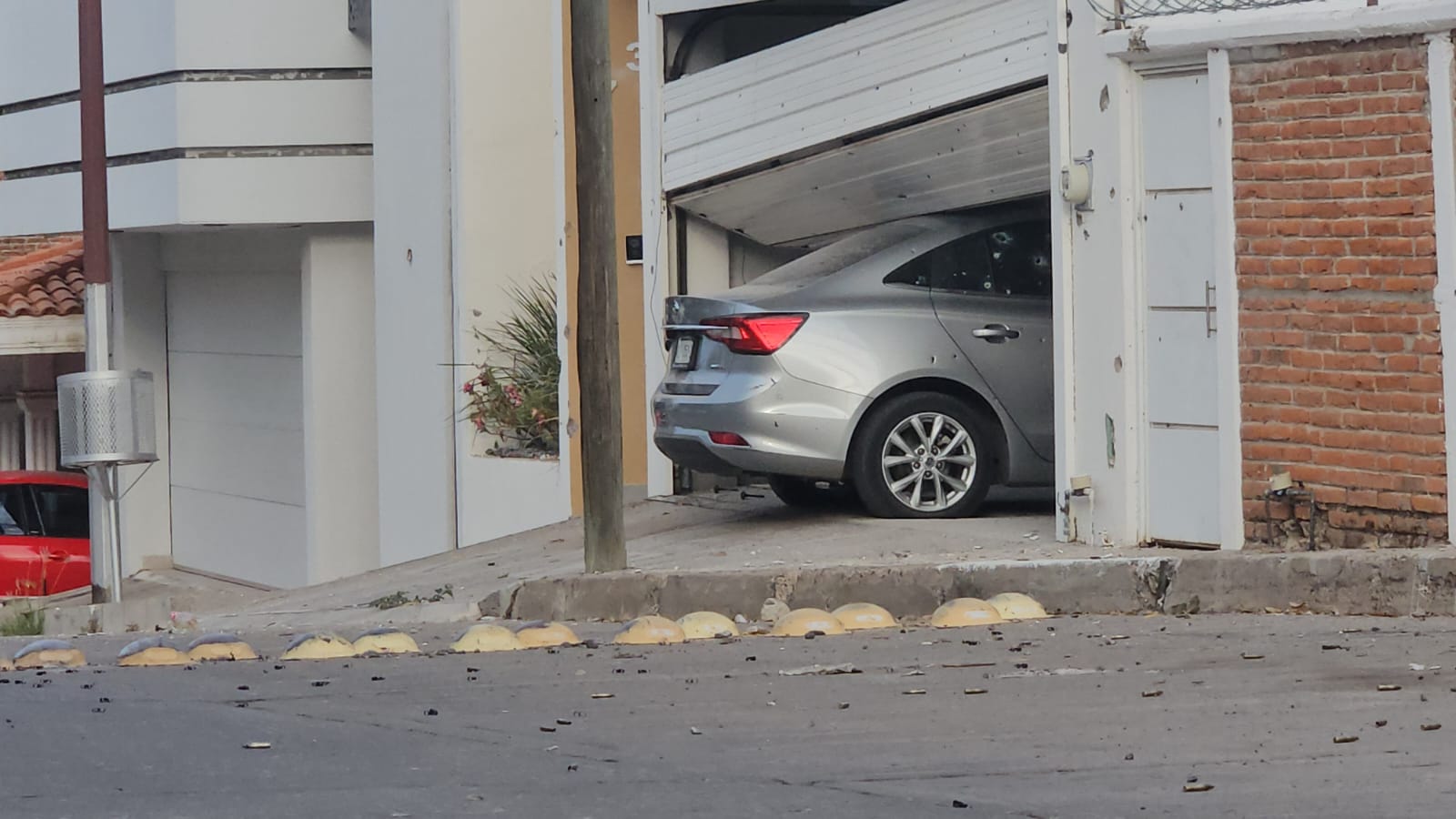 El vehículo utilizado para derribar el portón era un compacto de color gris, marca MG, modelo 2024, el cual había sido despojado minutos antes del atentado. La unidad quedó incrustada en la cochera de la vivienda y presentaba múltiples impactos de bala en la carrocería, siendo abandonada en el lugar por los agresores.