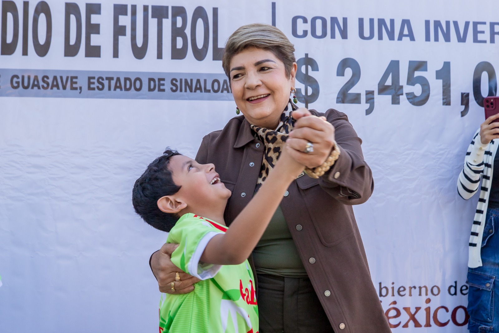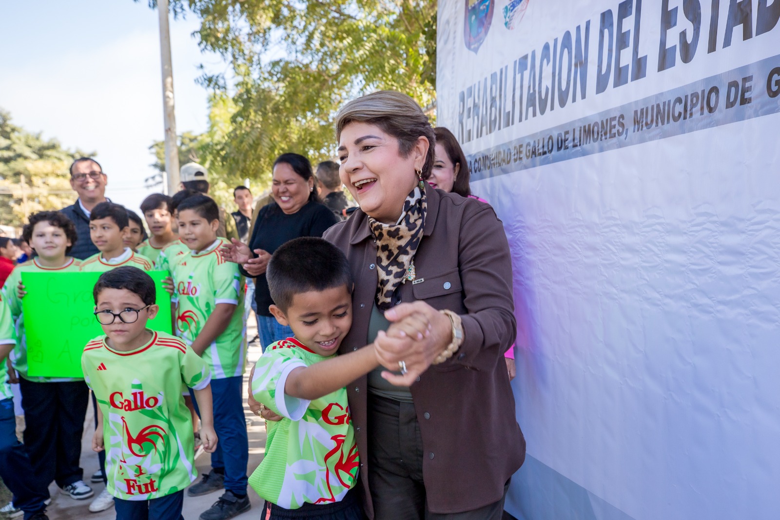 Guasave, Sin.- Más de 100 niñas y niños de ocho equipos del club GalloFut en El Gallo de Limones, sindicatura de Benito Juárez, tendrán un estadio de futbol renovado, con una inversión de 2 millones 451 mil 067 pesos, del predial rústico, un recurso que está regresando a las comunidades en obras de alto sentido social y que la población solicitó en los foros ciudadanos.