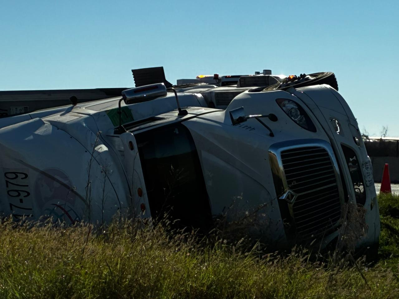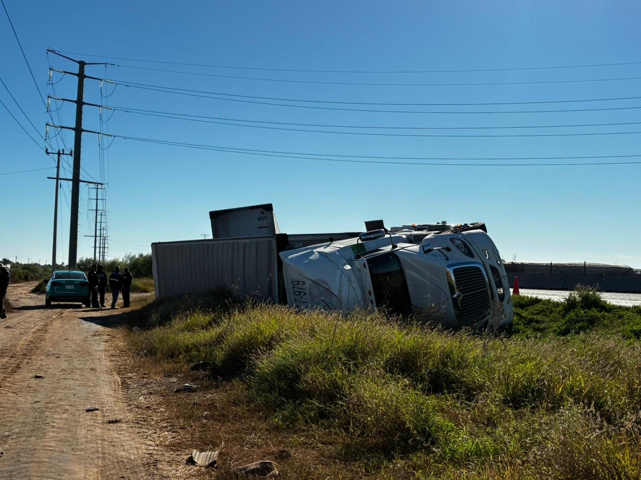 El percance ocurrió sobre los carriles de sur a norte, en una zona recta cercana a Concheros, en los límites del municipio de Juan José Ríos con Ahome. De acuerdo con los primeros reportes, el conductor del tractocamión, un Kenworth blanco con doble remolque, habría perdido el control tras quedarse dormido al volante, lo que provocó que la unidad saliera de la carpeta asfáltica y terminara volcada sobre su costado derecho.