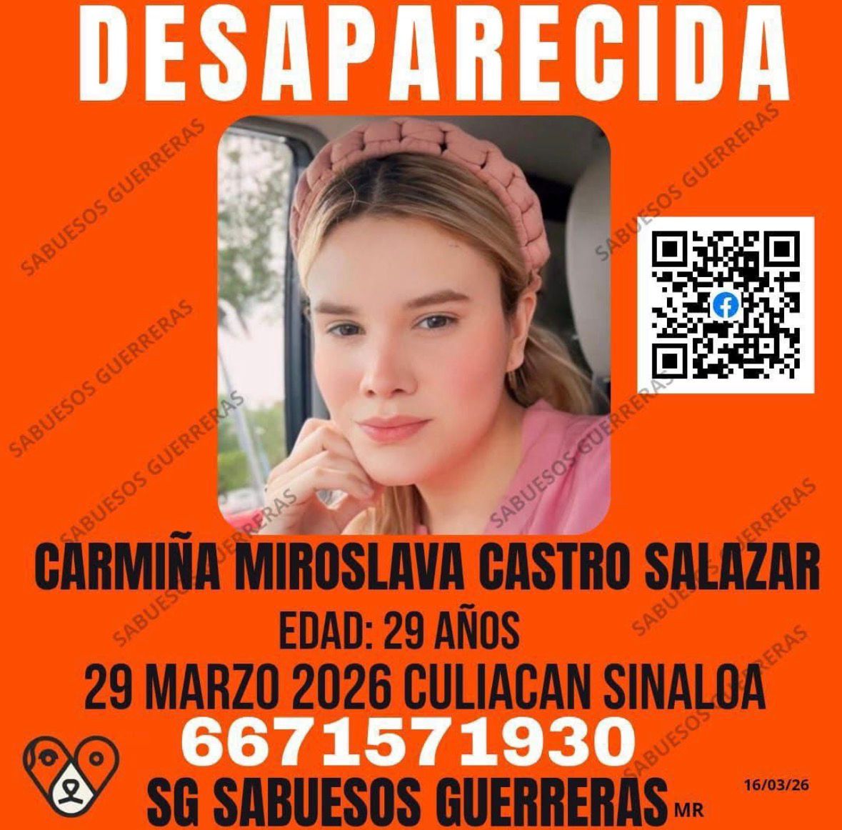 Culiacán, Sin.- Las autoridades activaron un operativo especial para localizar a Carmiña Miroslava Castro Salazar, de 29 años, repostera y creadora de contenidos, quien fue reportada como privada de la libertad la noche del domingo en un inmueble sobre el bulevar Rolando Arjona, en Culiacán.