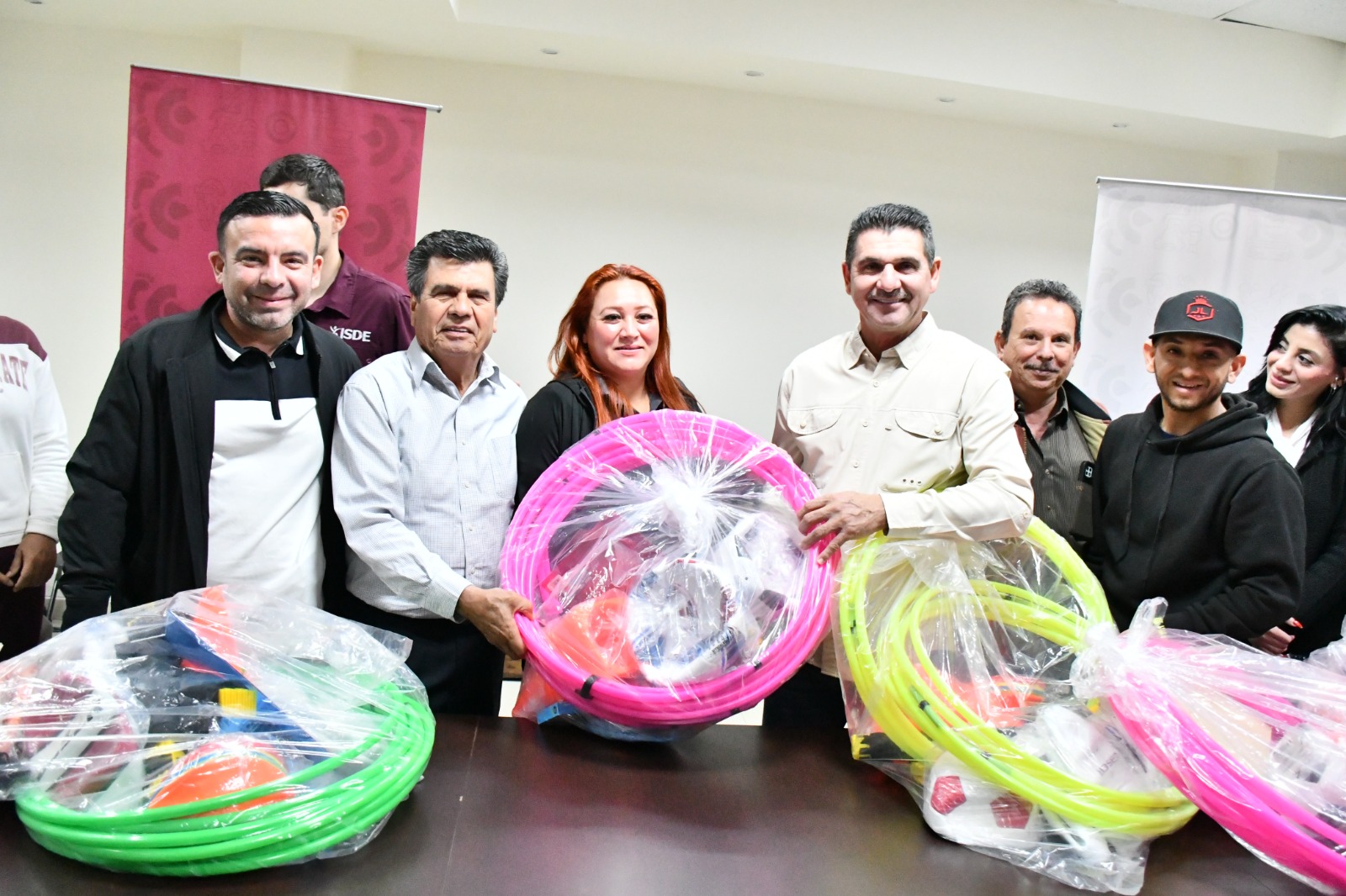 Durante el evento, Camacho Aguilar informó que se entregó material deportivo a 18 promotores, quienes estarán ubicados y trabajando activamente en las seis sindicaturas de Mocorito, con el objetivo de llevar la práctica deportiva a comunidades urbanas y rurales donde el acceso al deporte profesional era limitado.