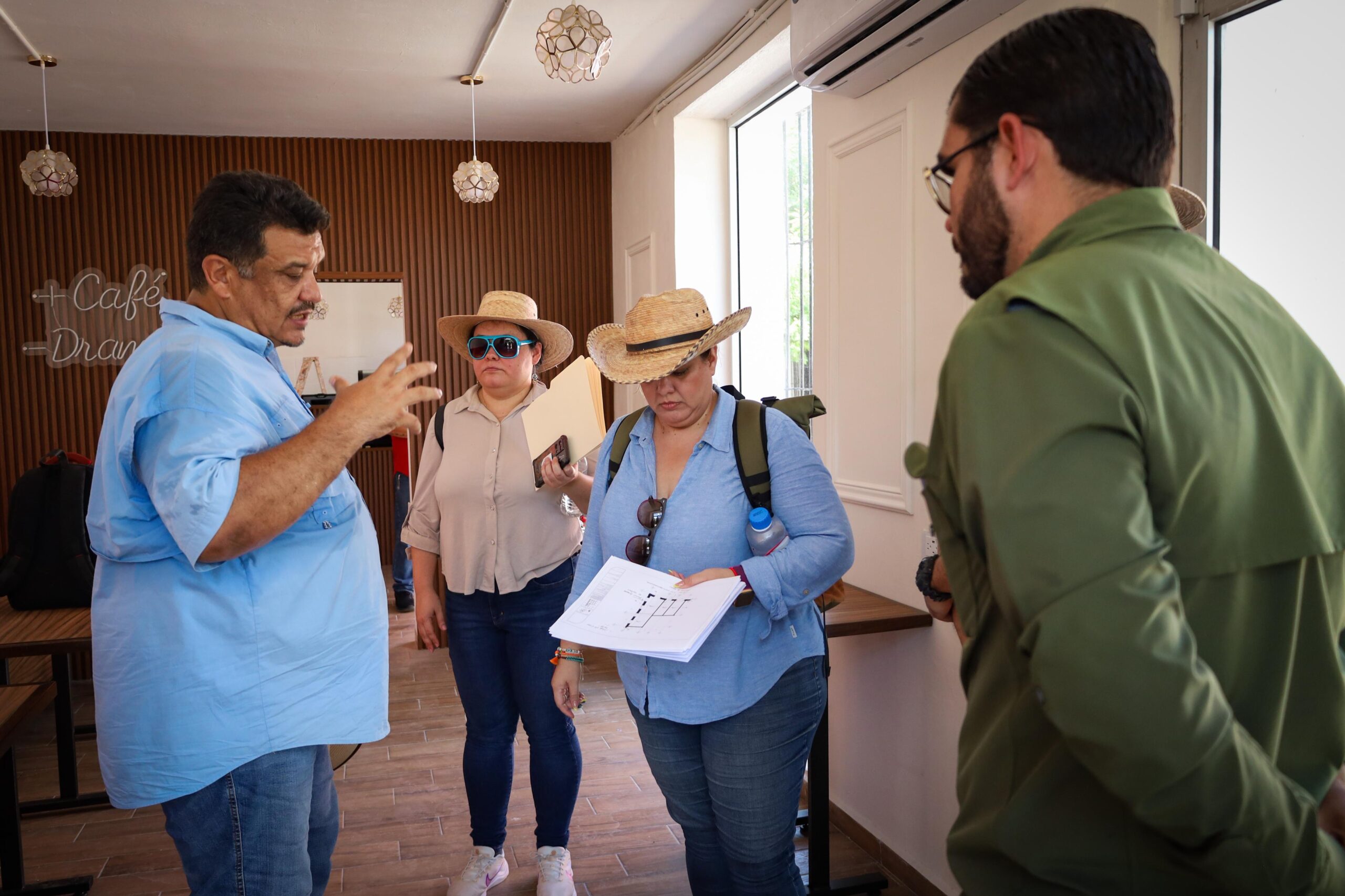 El recorrido fue encabezado por el arquitecto Jorge Arturo Gastélum Zepeda, perito del INAH, y el director del Centro INAH Sinaloa, Servando Rojo Quintero, acompañados por la directora de Obras Públicas, Beatriz Carolina Velázquez Castelo, y el jefe de Desarrollo Urbano, Rafael Beltrán Meza.