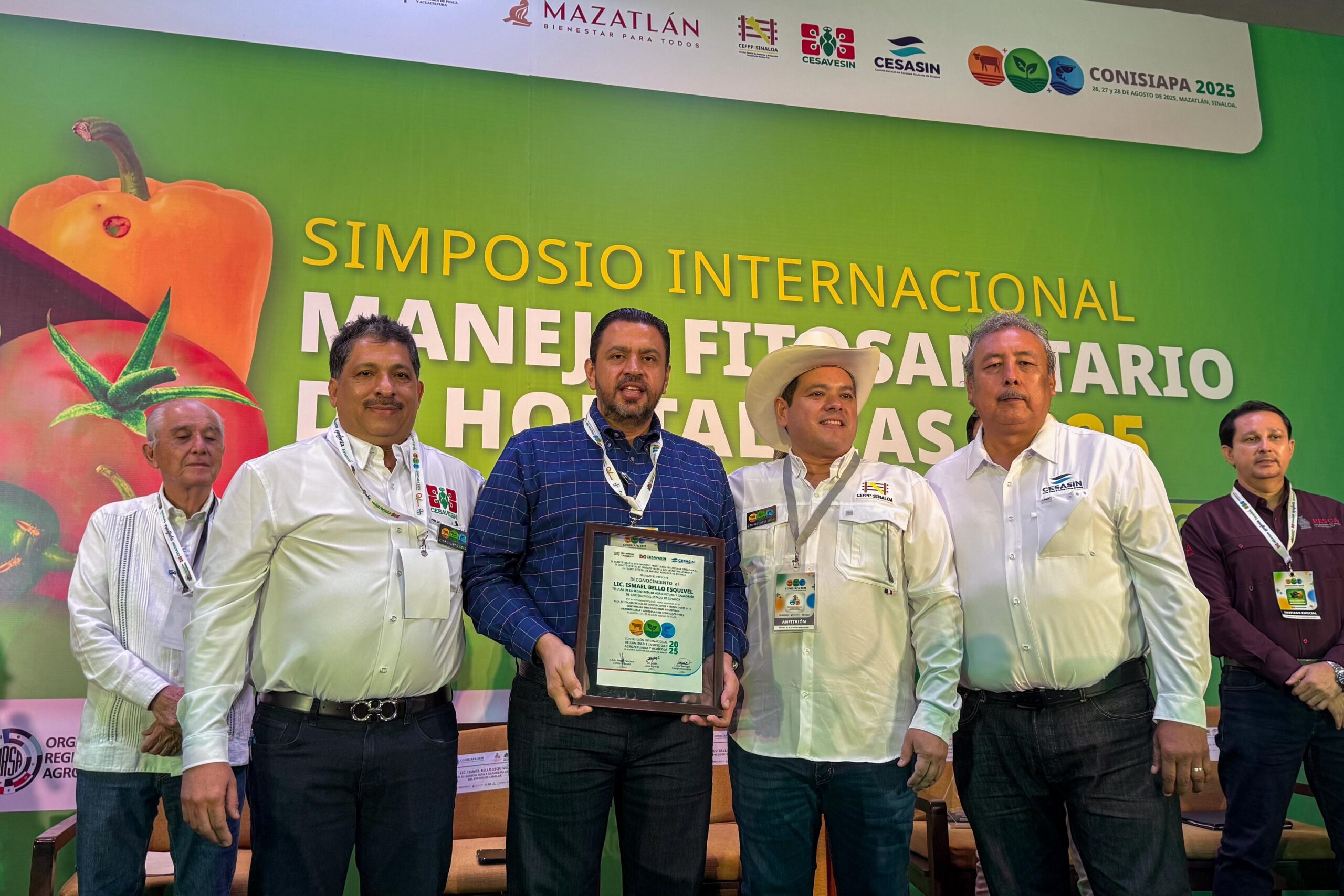 Mazatlán, Sin.- Con la representación del gobernador Rubén Rocha Moya, el secretario de Agricultura y Ganadería de Sinaloa, Ismael Bello Esquivel, inauguró la Convención Internacional de Sanidad e Inocuidad Agropecuaria y Acuícola 2025 -CONISIAPA- en este puerto, que reunirá a técnicos, especialistas y exponentes nacionales y extranjeros de 6 países, con el tema de la fitosanidad durante 3 días.