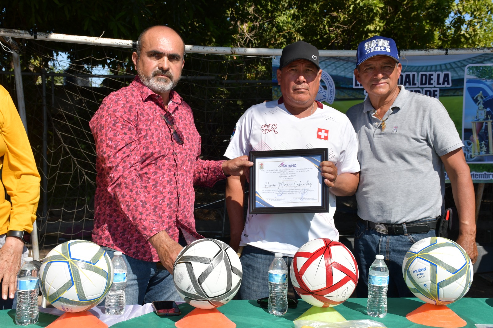 A nombre del presidente municipal Alberto «El Capy» Rivera, el director del Instituto del Deporte, José Albino Soberanes Rubio, hizo entrega de material deportivo a los entusiastas jugadores.