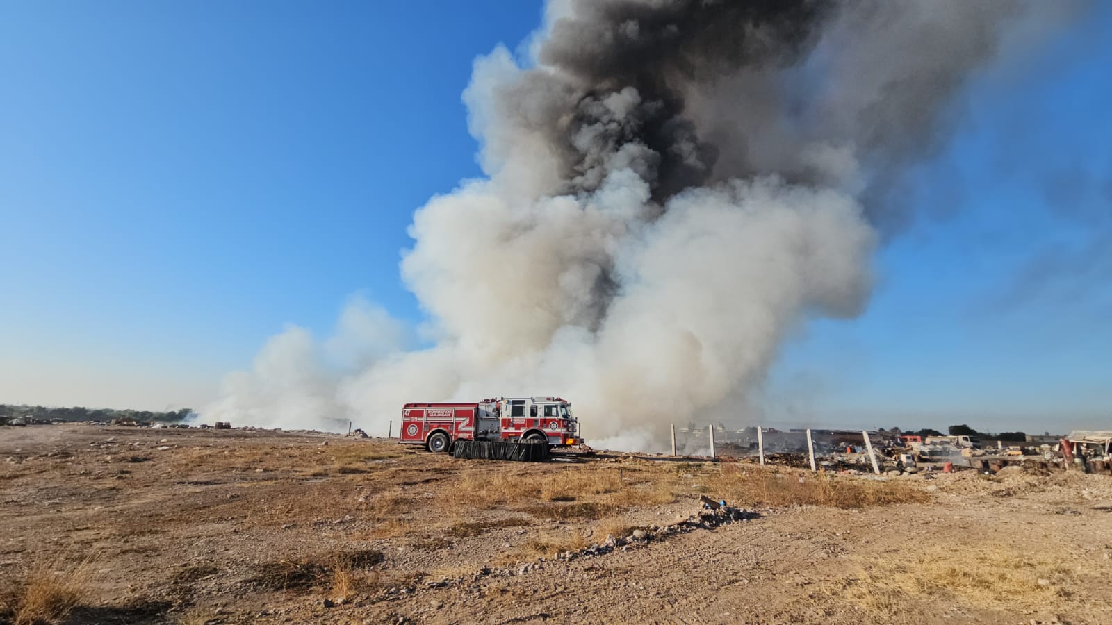 Culiacán, Sin.- Un incendio de gran magnitud se desató la madrugada de este sábado 27 de diciembre en un basurón clandestino ubicado en la zona conocida como el Piggyback, en las inmediaciones del campo El 10. Aunque no se reportaron personas lesionadas por el fuego, un bombero fue trasladado a un hospital tras ser picado por un alacrán durante las labores de combate.