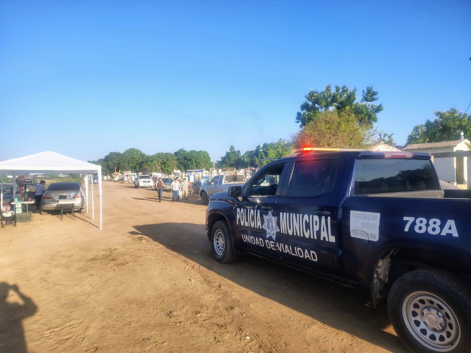 Los Mochis, Sin. – Con motivo del Día de los Fieles Difuntos, la Secretaría de Seguridad y Protección Ciudadana (SSYPC) de Ahome puso en marcha un operativo especial de vigilancia en los cementerios de las siete sindicaturas y de la ciudad, con el propósito de garantizar la seguridad y el orden durante las visitas a los panteones.