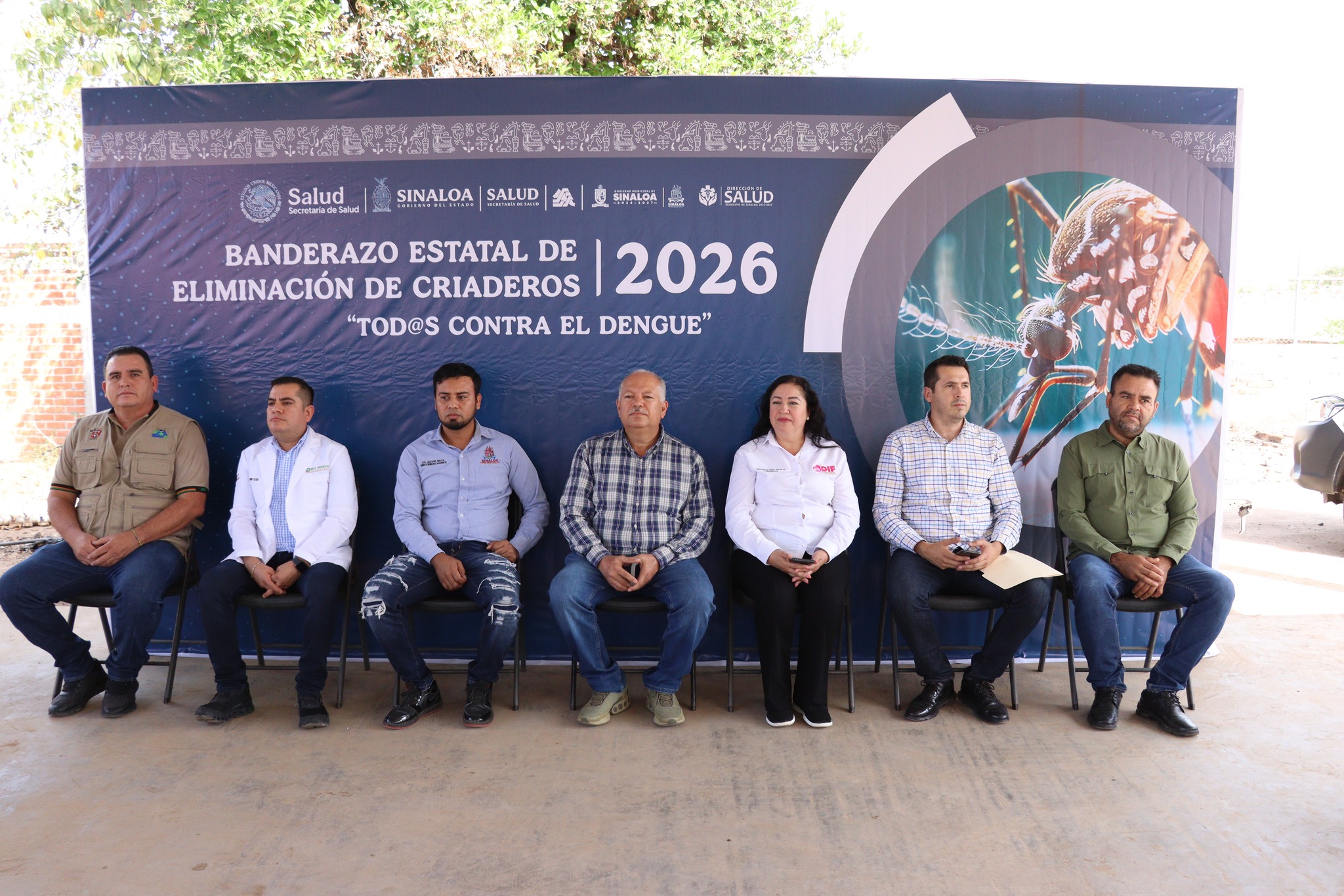 Sinaloa de Leyva, Sin a 3 de febrero de 2026. – Con el objetivo de prevenir enfermedades transmitidas por mosquitos y proteger la salud de la población, el alcalde Rolando Mercado, acompañado de diversas autoridades municipales y de salud, inició la Campaña Estatal para la Eliminación de Criaderos 2026, bajo el lema “Todos contra el dengue”, en la plazuela de la sindicatura de Bacubirito, Sinaloa.