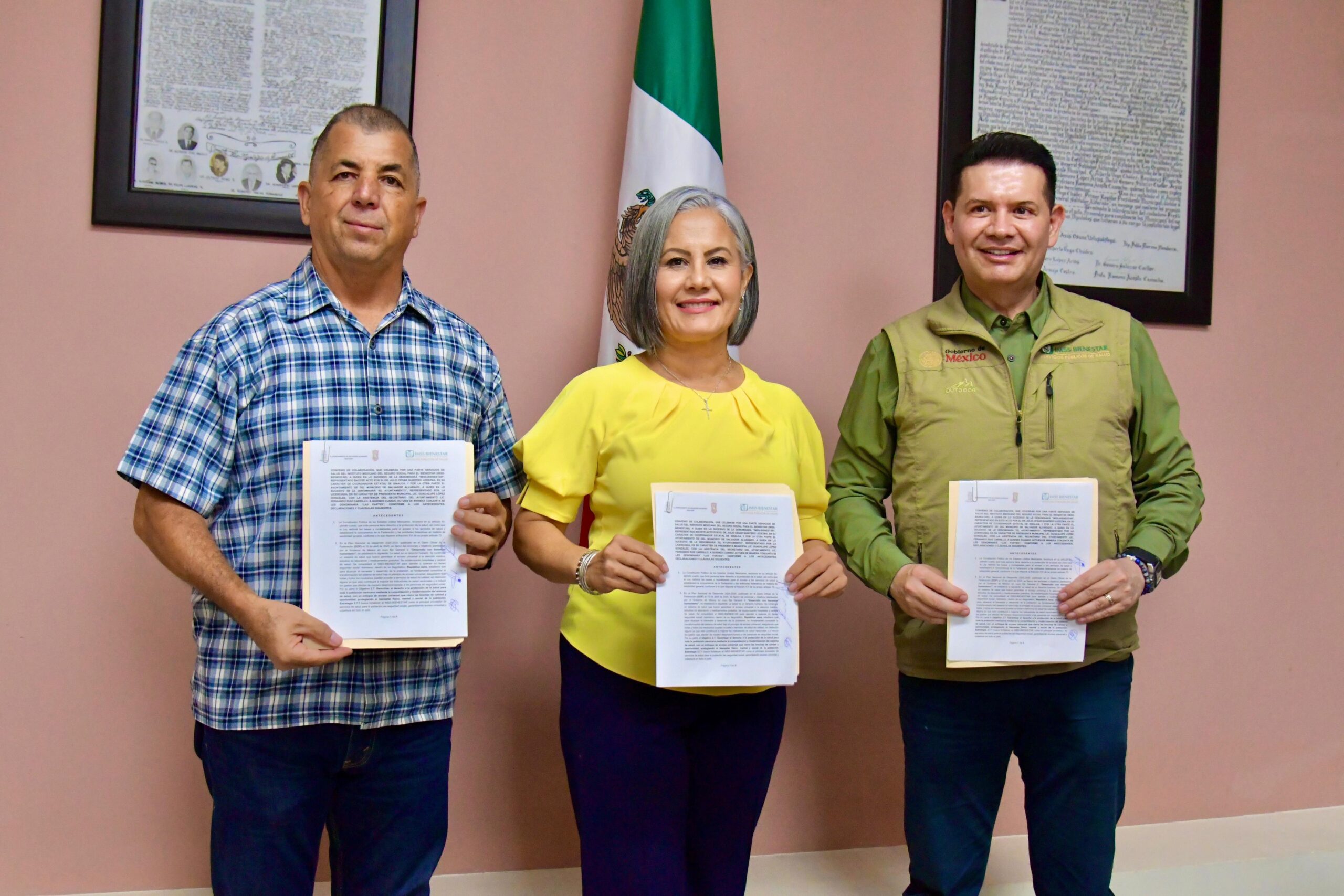 Guamúchil, Sin.- El Ayuntamiento de Salvador Alvarado, encabezado por su presidenta municipal, Lupita López González, formalizó un convenio con el coordinador estatal de los Servicios de Salud del Instituto Mexicano del Seguro Social para el Bienestar en Sinaloa, Dr. Julio César Quintero Ledezma, con el objetivo de instalar un módulo de afiliación al IMSS-Bienestar dentro del Ayuntamiento. Esta iniciativa busca garantizar que las personas que no cuentan con seguridad social puedan acceder a servicios médicos básicos y recibir atención oportuna.