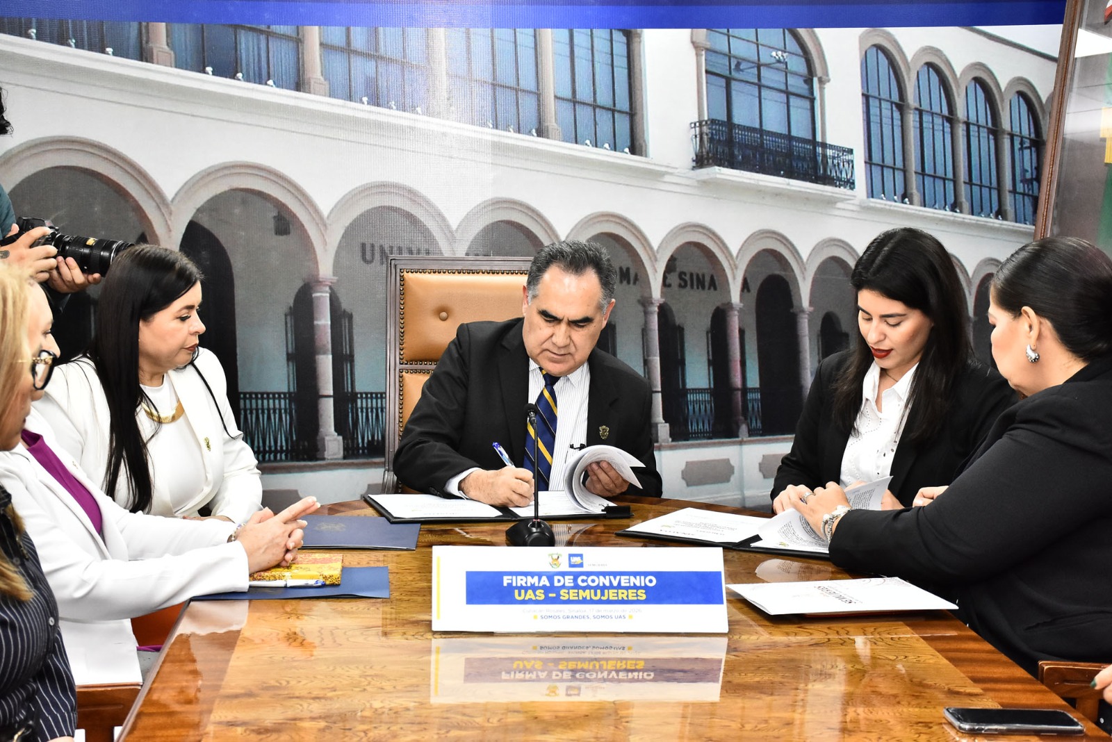 Culiacán, Sin.- La Universidad Autónoma de Sinaloa (UAS) y la Secretaría de las Mujeres (SEMUJERES) del Gobierno del Estado firmaron un convenio general de colaboración que, a través de la academia, la docencia, la investigación y la extensión de la cultura, fortalecerá el desarrollo social, económico y político de las mujeres sinaloenses.