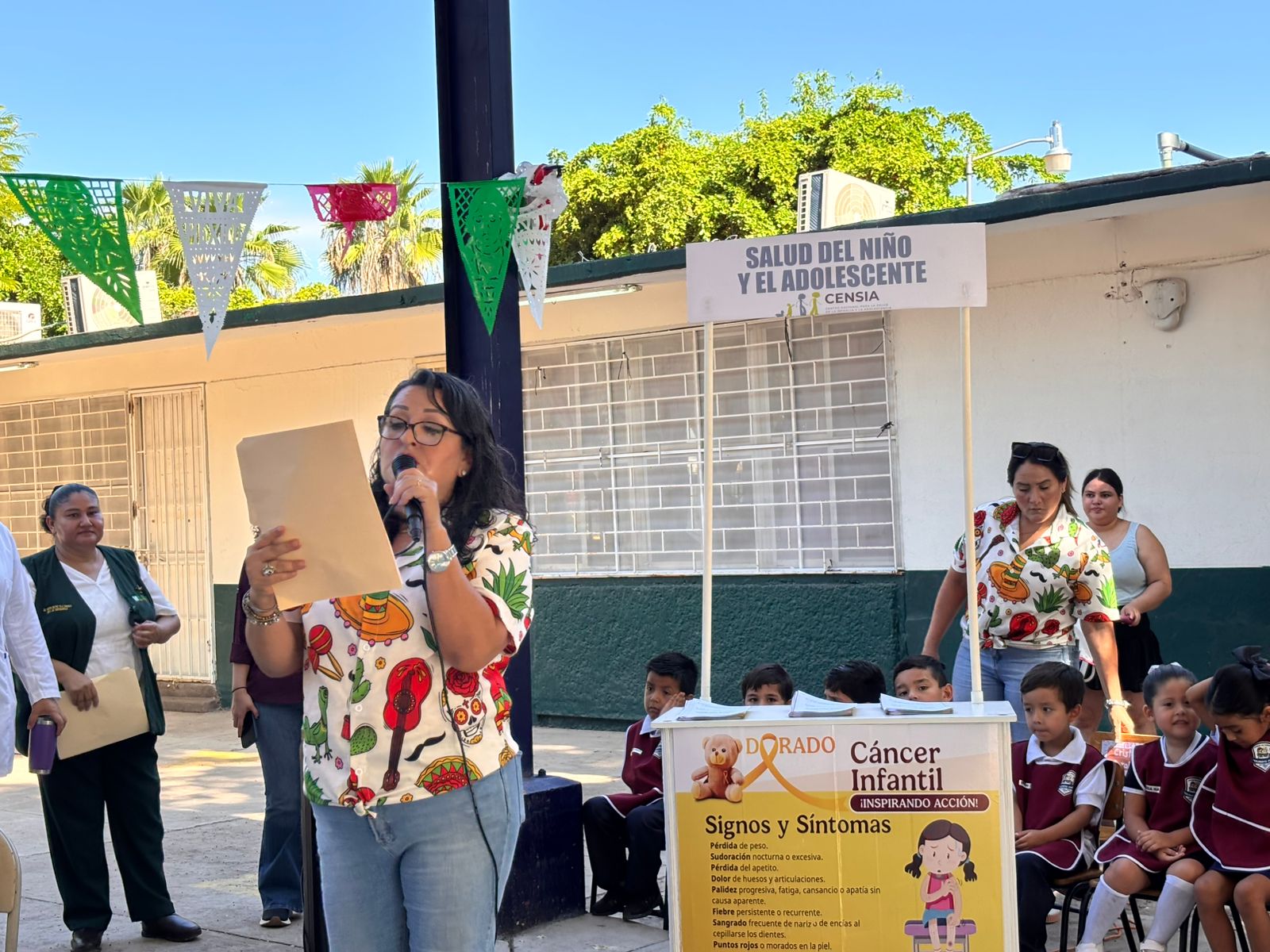 Los Mochis, Sin.- Dentro del marco del mes de la concientización para la detección del cáncer infantil, la Jurisdicción Sanitaria culminó las actividades de promoción de la salud en las escuelas primarias y preescolares de la zona norte del estado para informar a los padres de familia sobre la importancia de detectar los primeros síntomas a tiempo y empezar un tratamiento oportuno.