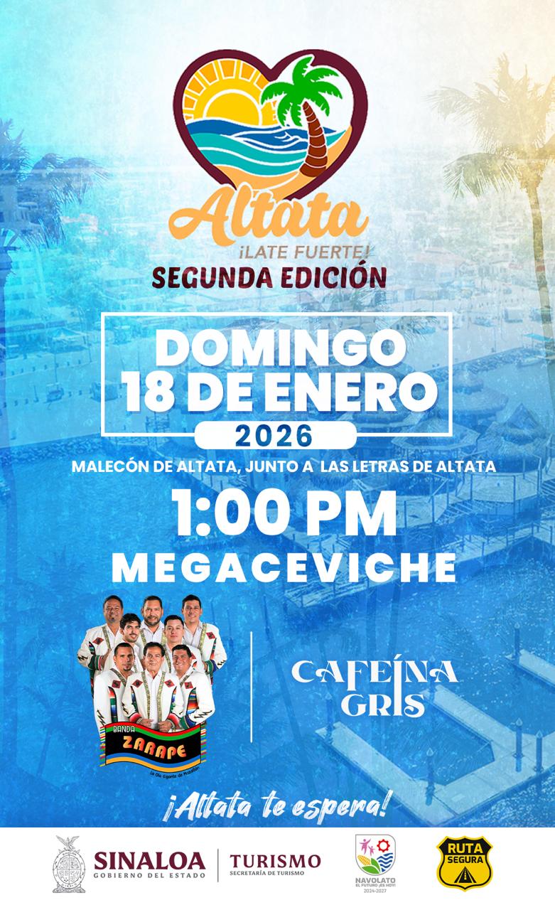 “Invitamos a todos los sinaloenses y visitantes a disfrutar de un ambiente cien por ciento familiar, con música, cultura, gastronomía y la hospitalidad de la gente de Altata, donde se tendrá la elaboración de un mega ceviche de 700 kilos, el cual podrá ser degustado de forma gratuita por todos los asistentes”, expresó.