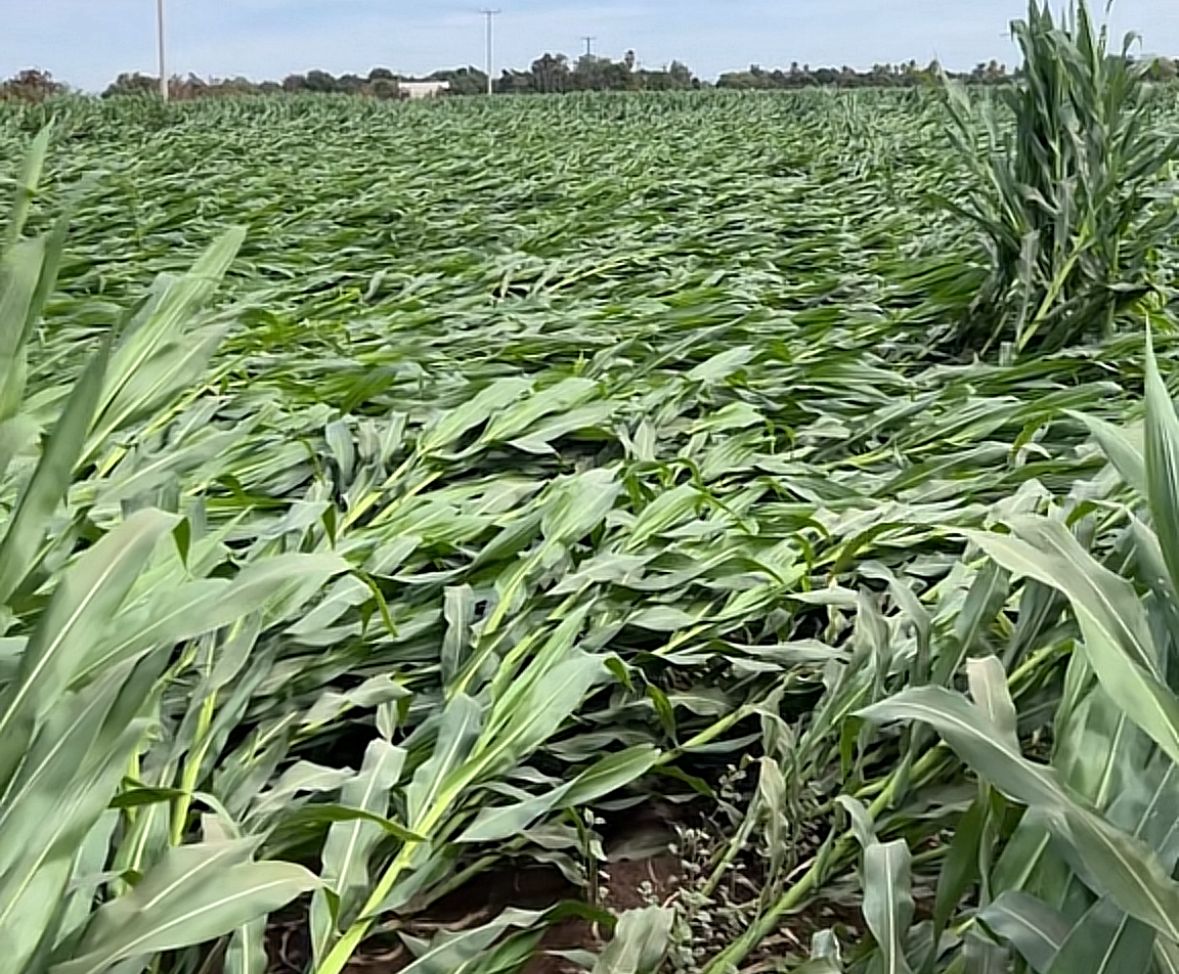 El líder agrícola expresó que los maíces mayormente afectados son aquellos que rebasan un metro 20 centímetros de altura, ya que la lluvia aflojó el terreno y el viento provocó que se generara el acamado de la planta, por lo que aunque la planta pudiera recuperar continuar con su desarrollo vegetativo ya no dará el mismo rendimiento.