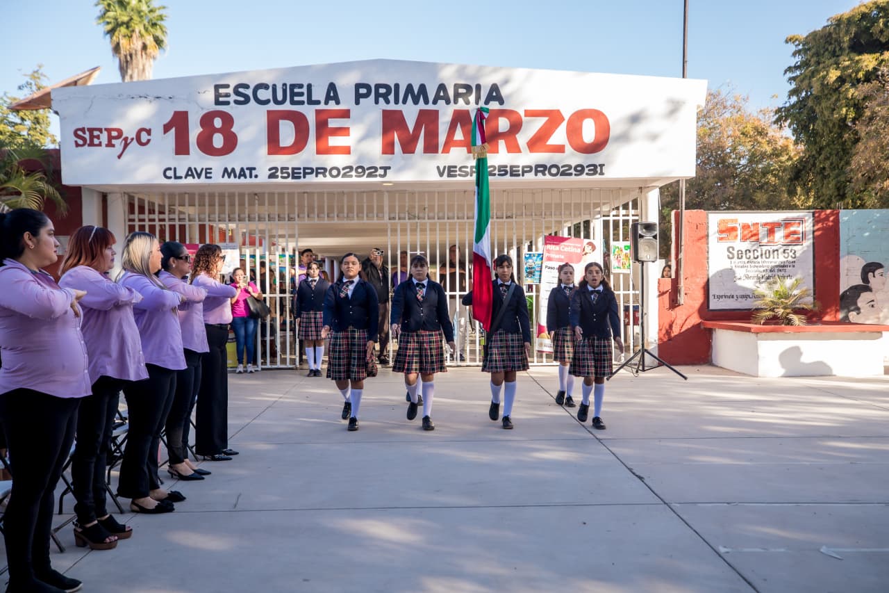 En este acto cívico, de la Dirección General de Educación, se celebraron los 90 años de historia de la Escuela Primaria 18 de Marzo. La directora del plantel, Lourdes Agramón, dijo que esta escuela es una joya histórica de Guasave; agradeció a la alcaldesa y a Parques y Jardines el apoyo para rehabilitar la explanada y a Bienestar y Obras, la gestión de un proyecto de nueva fachada.