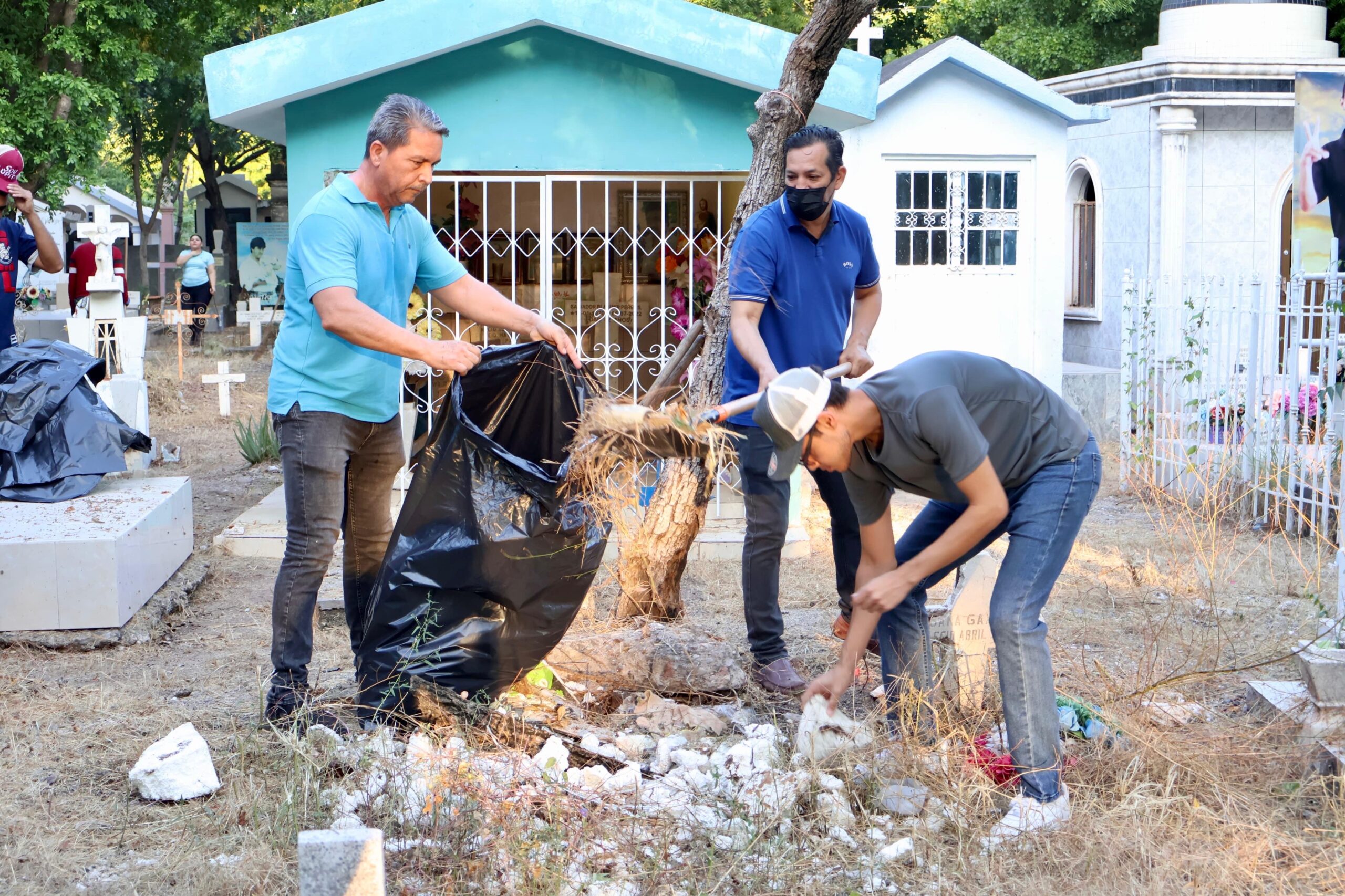 López González señaló que ambos panteones presentaban una gran acumulación de basura, ramas y escombros, por lo que los trabajos fueron intensos y coordinados. Añadió que las labores continuarán en los próximos días, con el propósito de que los espacios estén completamente limpios y en orden para que las familias puedan visitar las tumbas de sus seres queridos en un entorno digno y seguro.